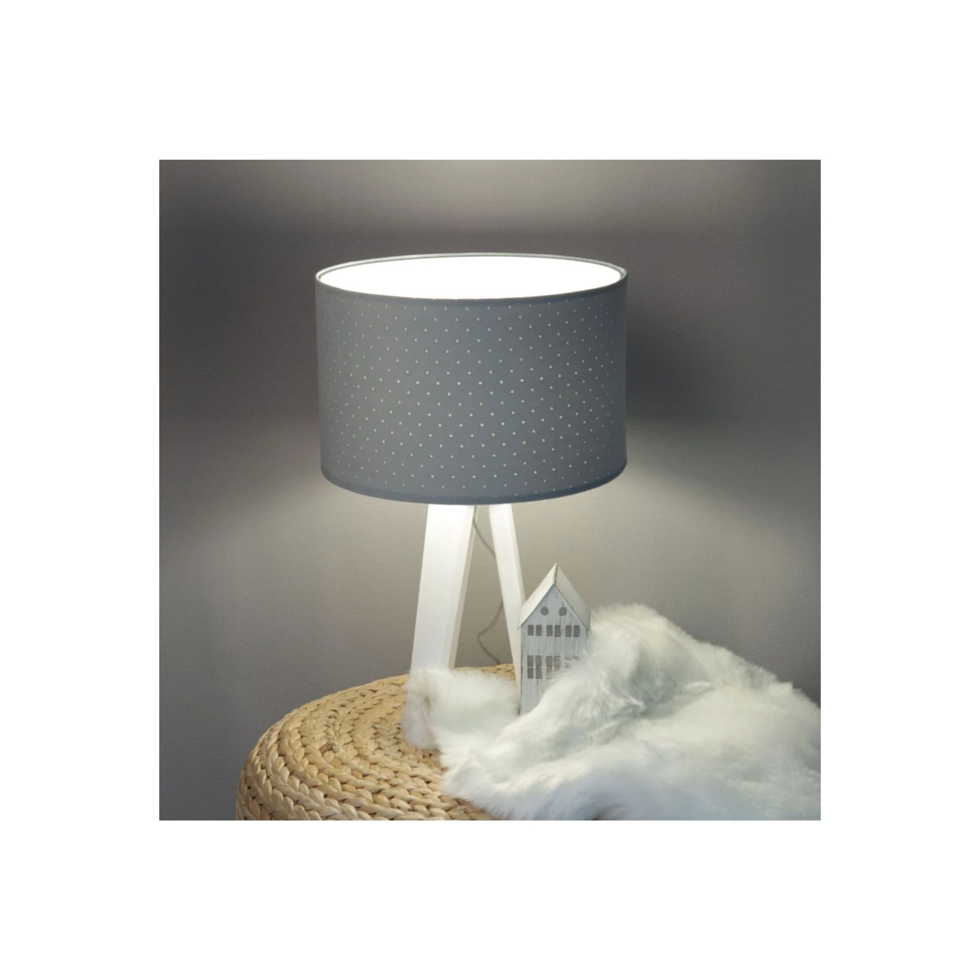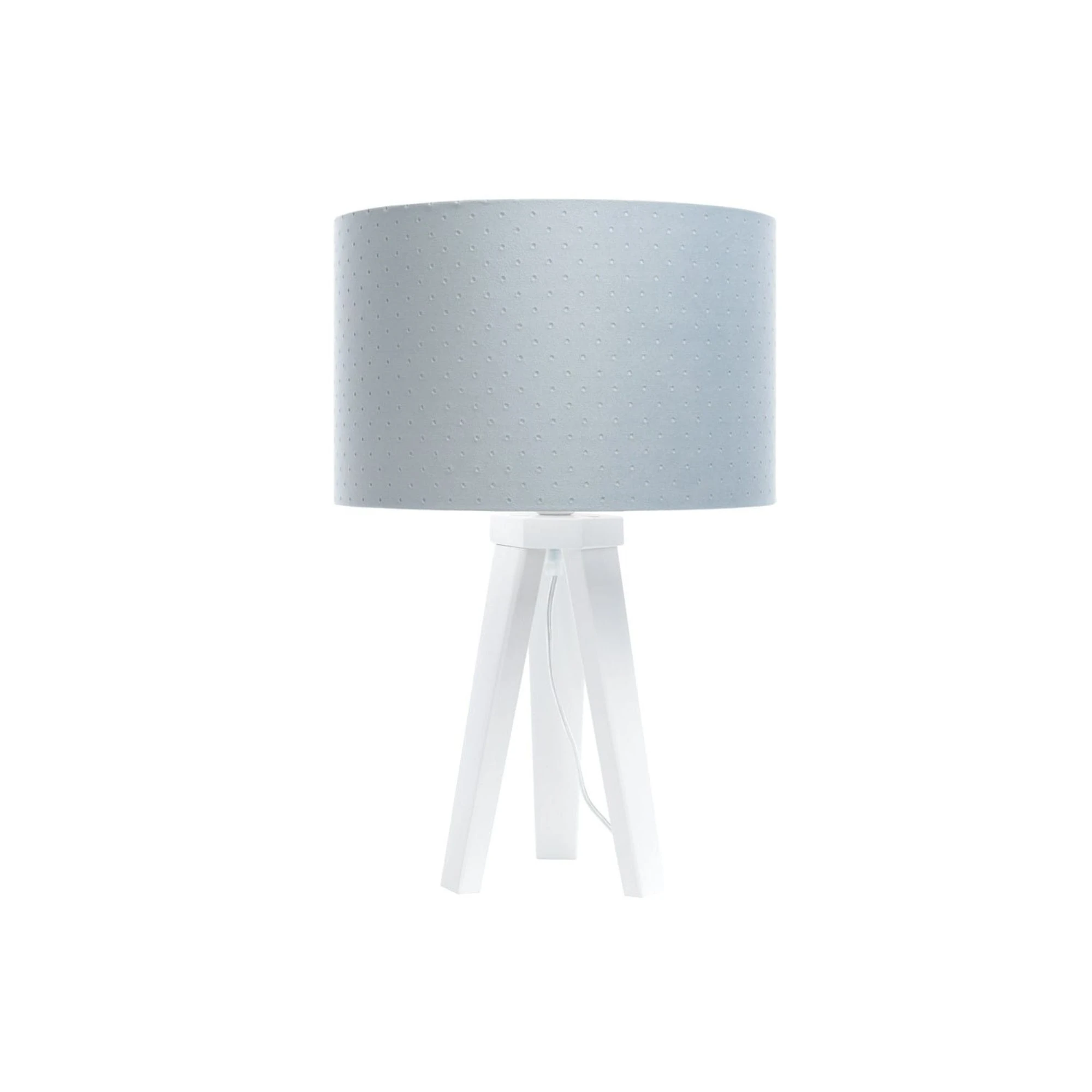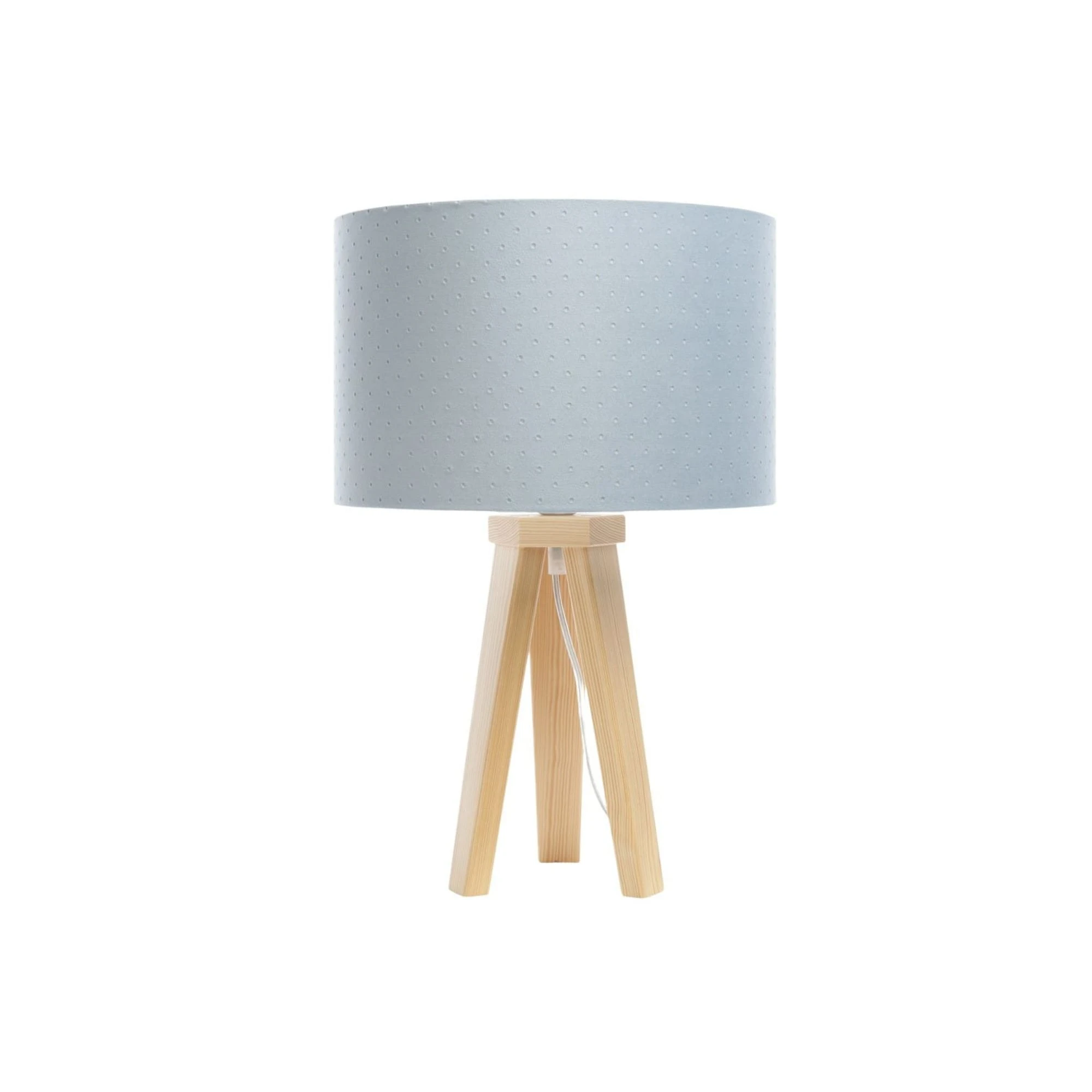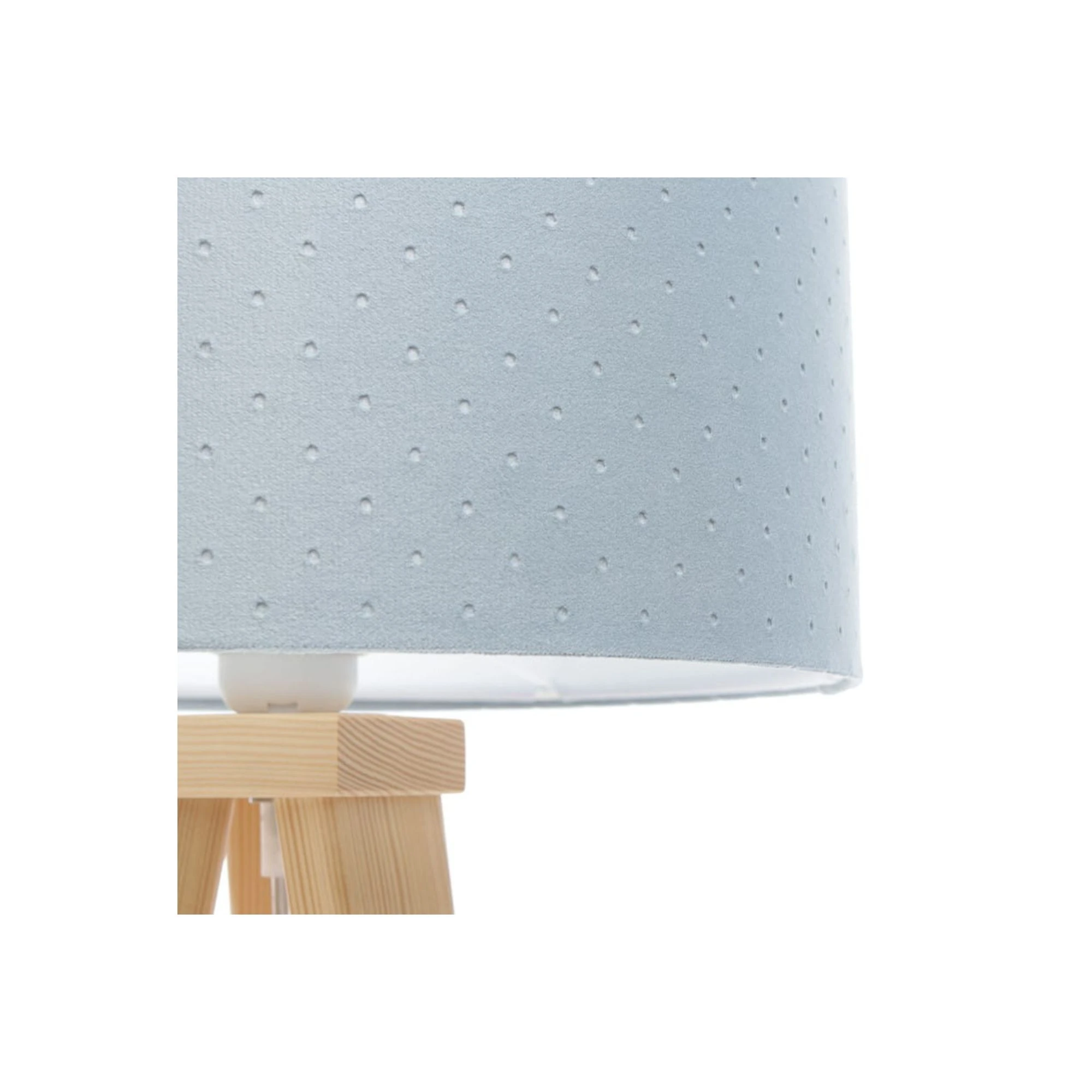 Lampka nocna stalowa Jasmine Bebe to lekkie, dodatkowe oświetlenie do pokoju dziecka, które łączy stalowobłękitny abażur, drewnianą podstawę i subtelne wykończenie całej formy. Abażur z pikowanej tkaniny jaśminowej miękko rozprasza światło, dzięki czemu lampka dobrze sprawdza się wieczorem i estetycznie dopełnia dziecięce wnętrze. Na dedekids.pl zamówisz ją z darmową dostawą.