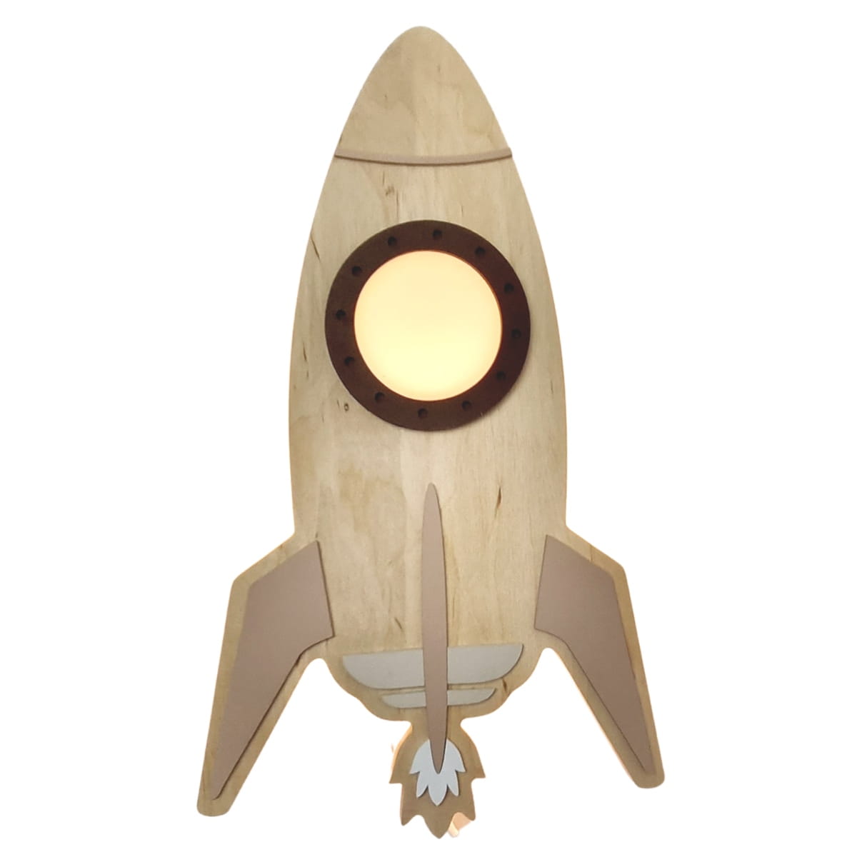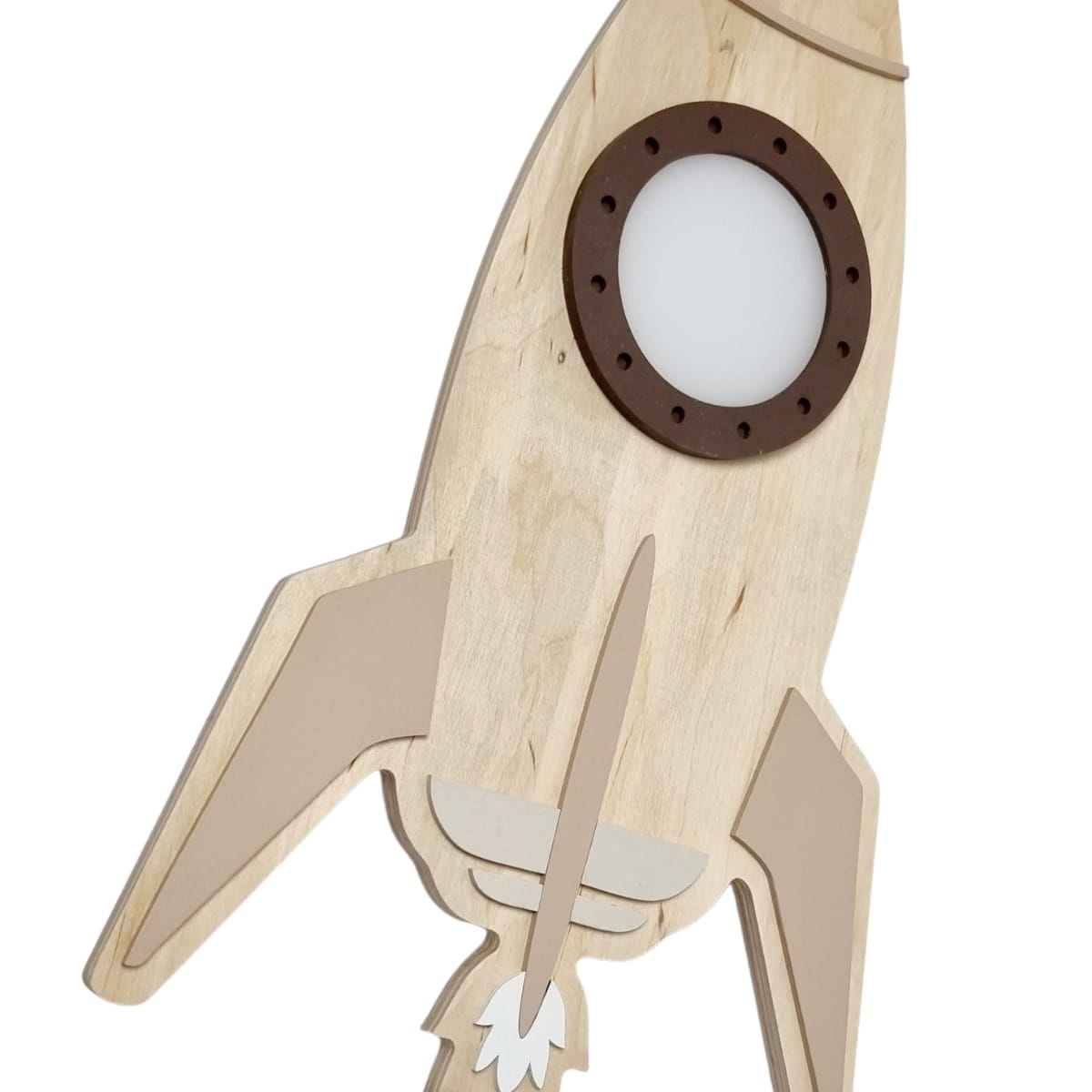 Drewniana lampka LED w kształcie rakiety to świetny wybór dla rodziców, którzy szukają pięknego, bezpiecznego i praktycznego oświetlenia, które rozświetli dziecięce marzenia o kosmicznych przygodach.