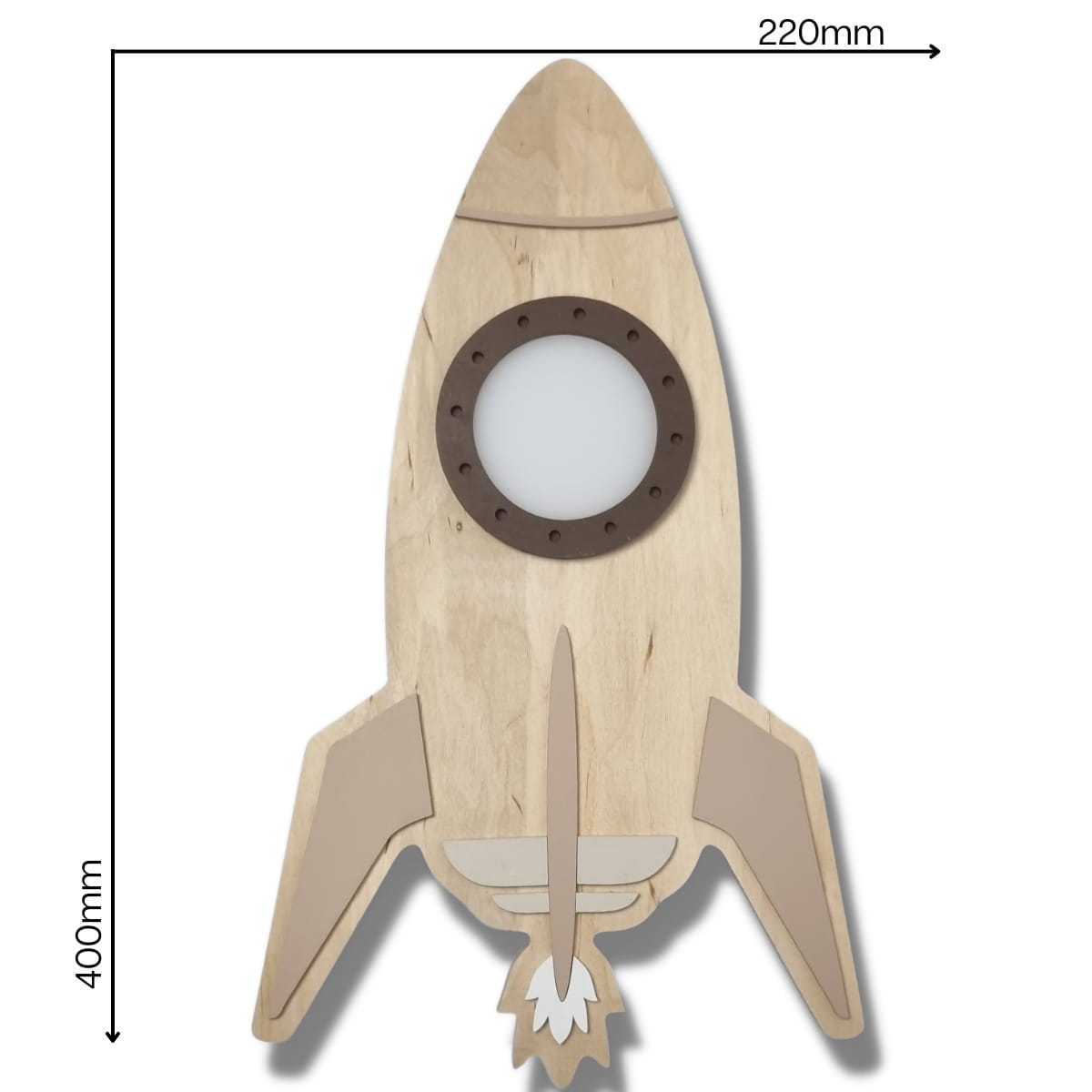 Lampka z drewna w kształcie rakiety to doskonałe połączenie stylu i funkcjonalności, które wniesie do dziecięcego pokoju odrobinę kosmicznej magii. Jej uroczy design przyciąga wzrok, tworząc wyjątkową dekorację, a ciepłe światło, które emituje, buduje przytulną i spokojną atmosferę – idealną do wyciszenia przed snem.