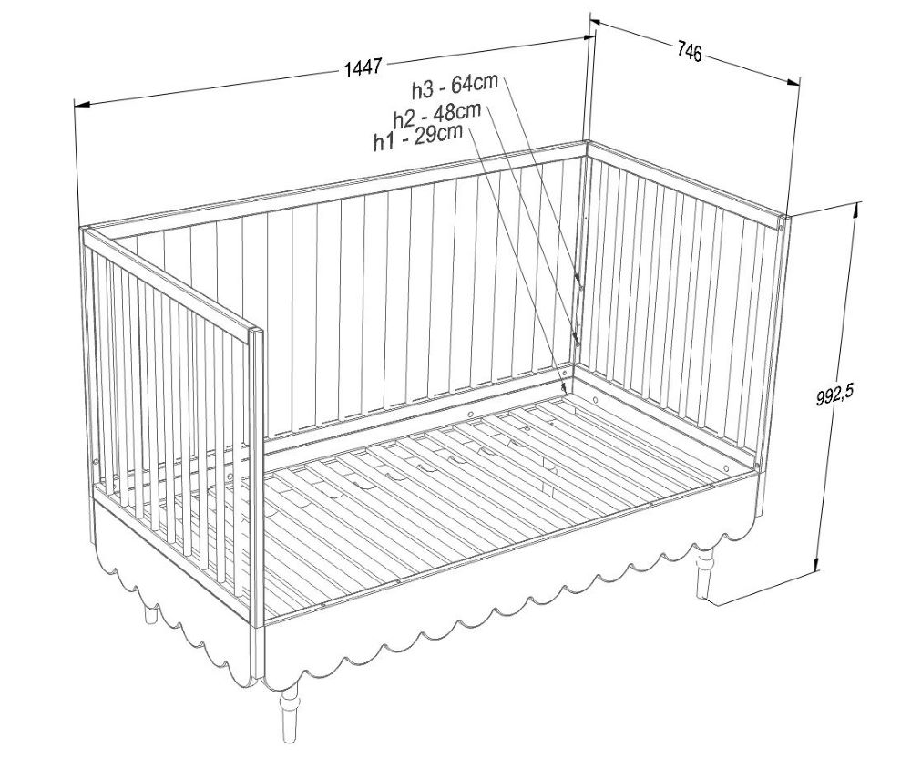 Gdy przyjdzie odpowiedni moment, z użyciem dołączonych elementów łóżeczko łatwo przekształcisz w tapczanik 70×140 cm, który posłuży jeszcze kilka lat.