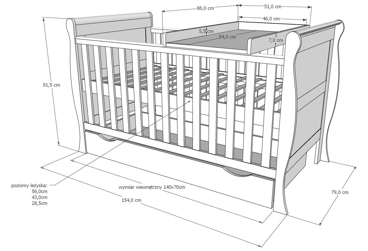 - wysokość łóżeczka: 91,5 cm