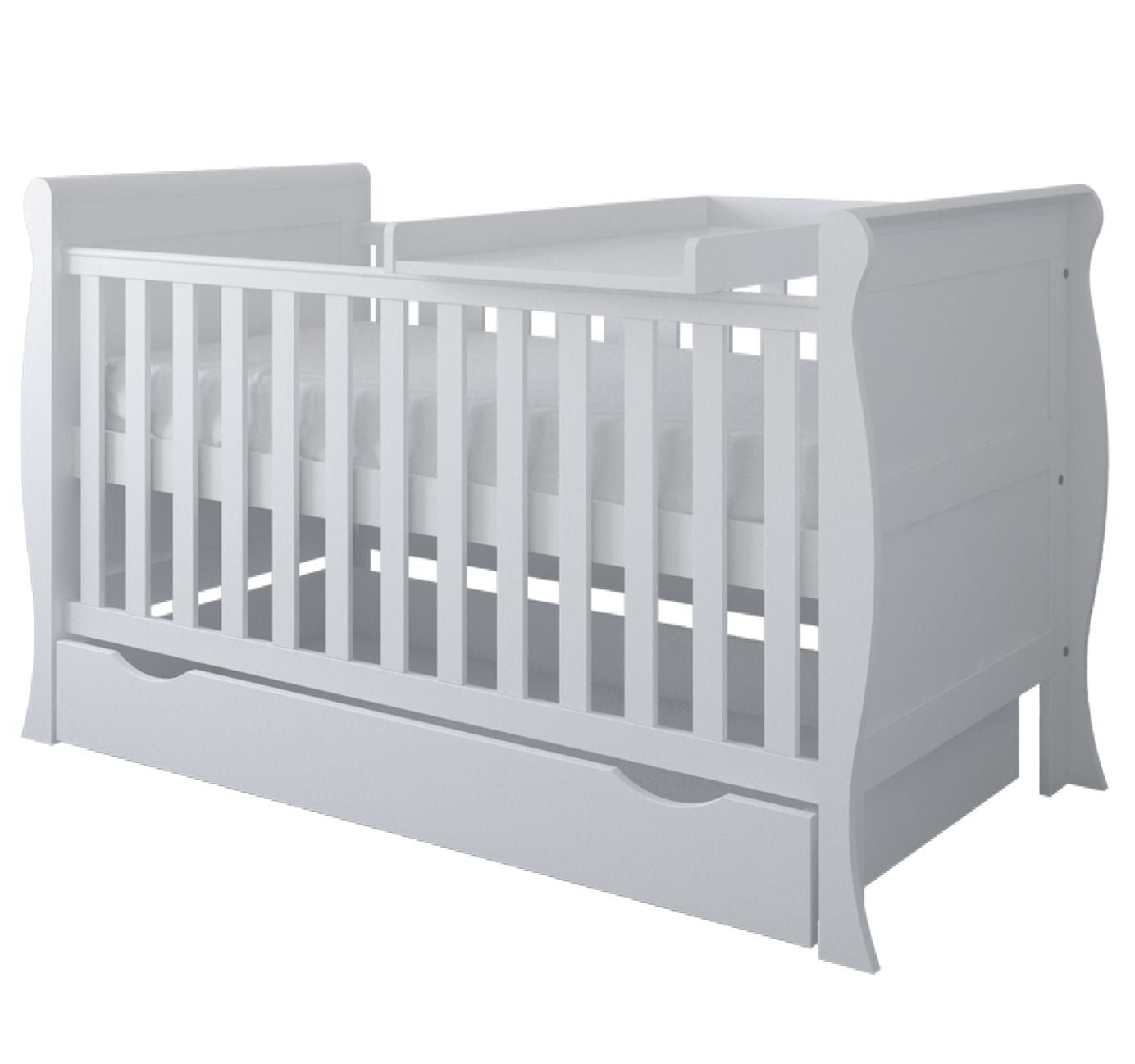 Eleganckie łóżeczko 3w1 idealnie pasujące do pokoju małej dziewczynki. Dzięki przemyślanej konstrukcji i zastosowanym rozwiązaniom, łóżeczko 3w1 może służyć dziecku od chwili narodzin aż do 5-6 roku życia. Łóżeczko w rozmiarze 140x70 dostępne jest w dwóch wersjach kolorystycznych: klasycznej białej lub nowoczesnej - szarej. Bez względu na kolor, łóżeczko 3w1 zapewni dziecku komfortowe i bezpieczne warunki do odpoczynku i zabawy przez pierwsze lata życia rosnąc razem z nim. Łóżeczko 3w1 to trzy rozwiązania dopasowane do wieku dziecka: