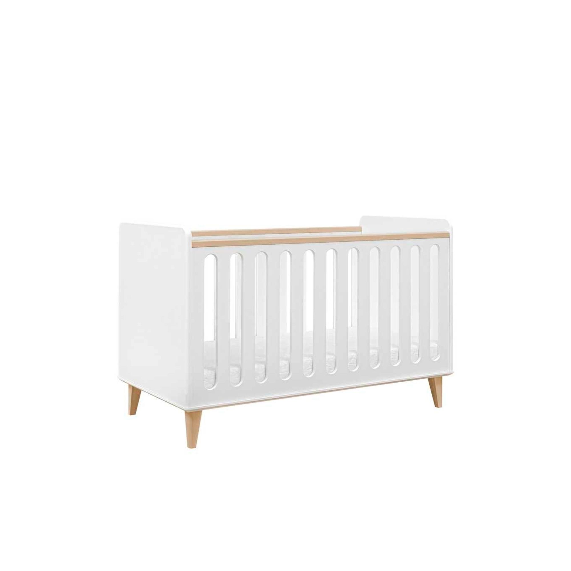 Minimalistyczna bryła łóżeczka, delikatnie zaokrąglone narożniki i brzozowe detale nawiązują do wzornictwa lat 60. i 70., a jednocześnie świetnie wpisują się we współczesne, skandynawskie aranżacje.