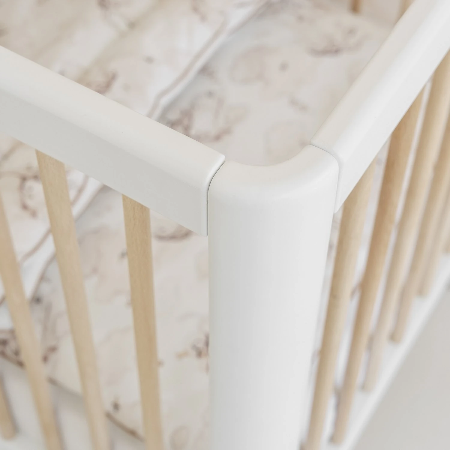 zaokrąglone narożniki minimalizują ryzyko bolesnych uderzeń o ostre krawędzie podczas zabawy w pobliżu łóżeczka,