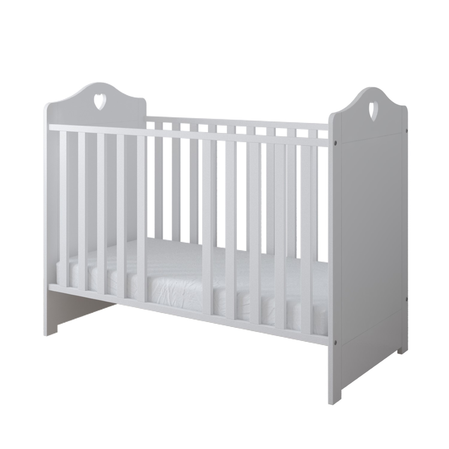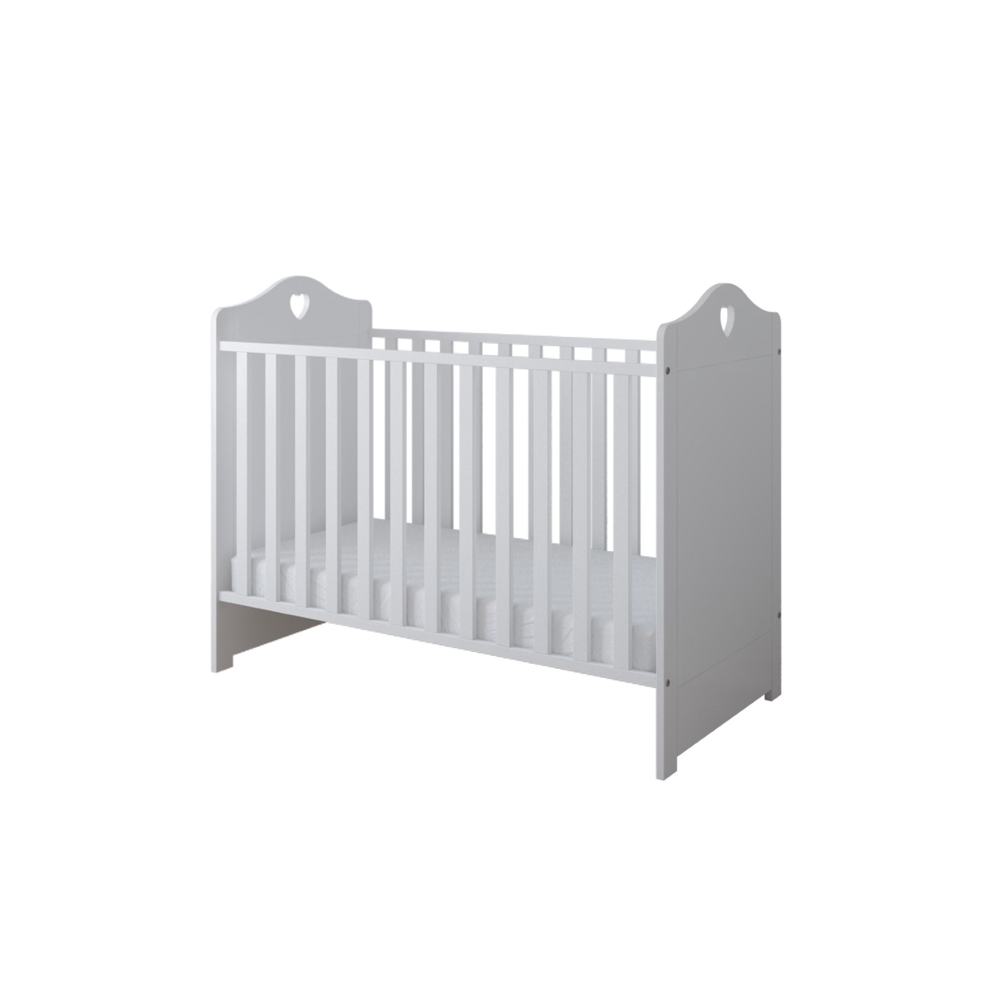 Łóżeczko dziecięce Bella 120x60 – białe łóżeczko niemowlęce z serduszkiem do kolekcji Bella