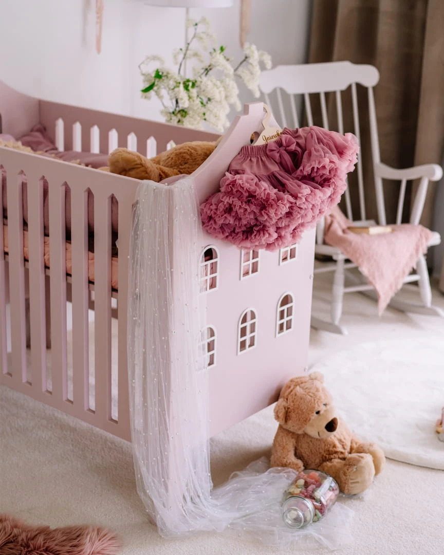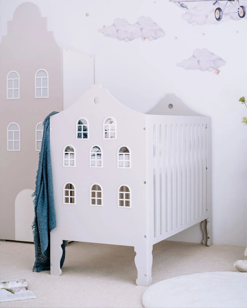 Łóżeczko dziecięce, które najlepiej opisuje jedno słowo: wyjątkowe! Łóżeczko do pokoju dziecka o szczytach przypominających fasady kamieniczek najpiękniejszych europejskich miast, uwodzi precyzją i kunsztem wykonania. Łóżeczko, podobnie jak pozostałe meble kamieniczki w całości jest ręcznie wykonane z największą starannością i dbałością o każdy szczegół. Zaprojektowane z myślą o spokojnym i bezpiecznym śnie maluszka stworzy prawdziwie bajkową scenerię dziecięcego pokoju. Dzięki pięknym pastelowym kolorom wprowadzi przytulny nastrój i pasować będzie do pokoju dziewczynki i chłopca.