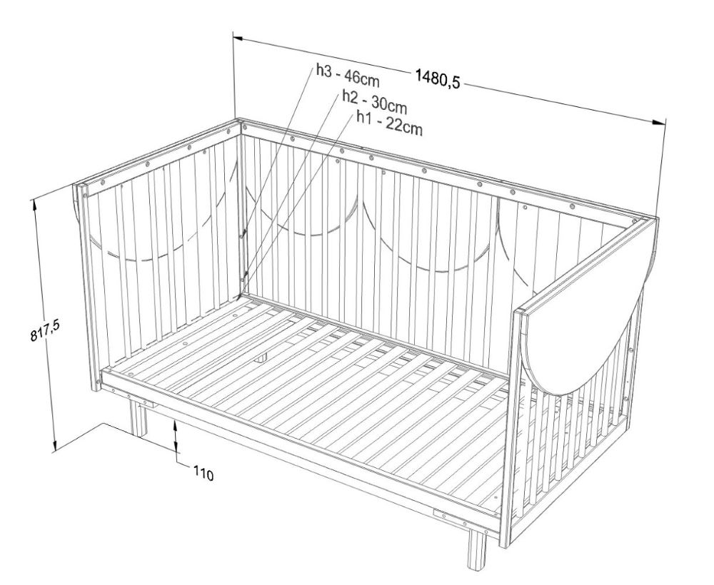kiedy przyjdzie czas na „prawdziwe łóżko”, łóżeczko łatwo przekształcisz w tapczanik 70x140 cm – bez konieczności kupowania nowej ramy.