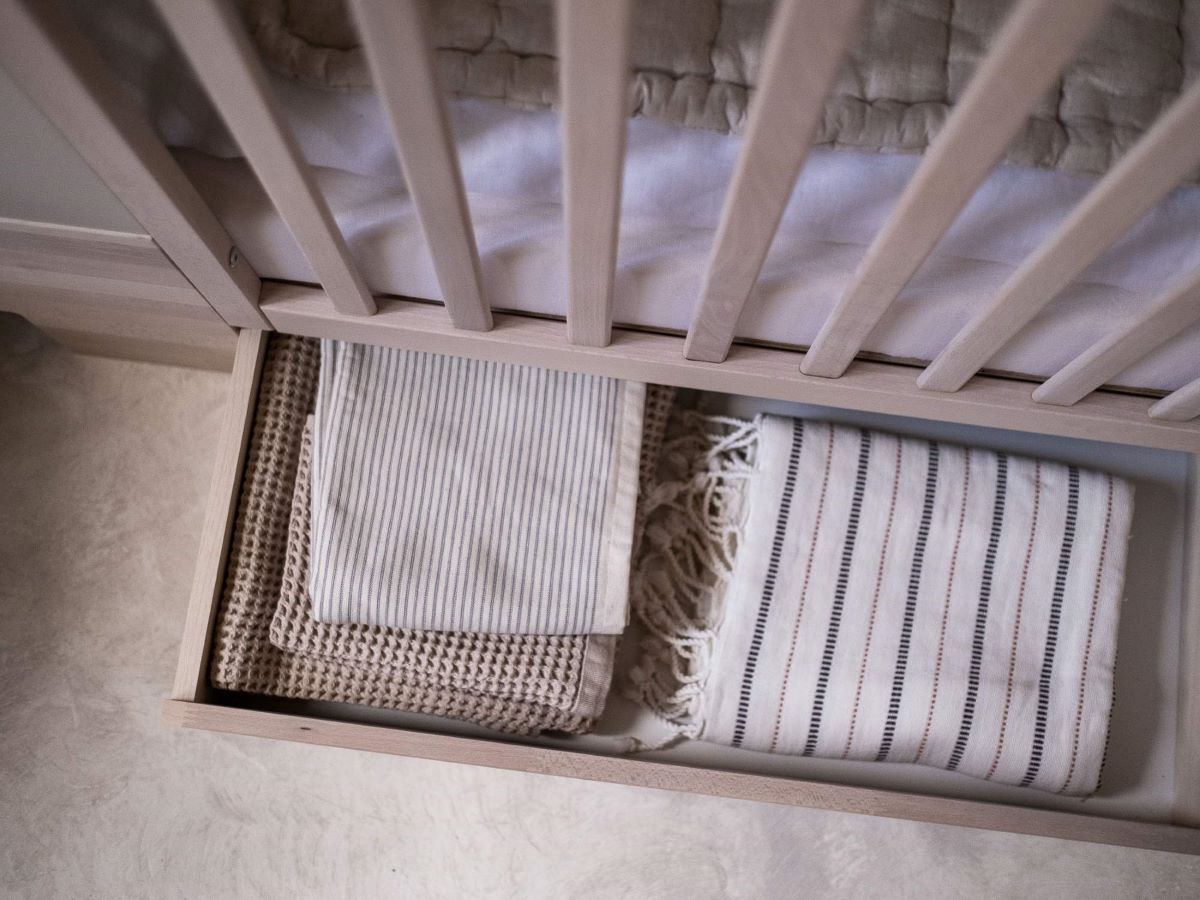 szuflada pod łóżeczkiem na pościel i tekstylia,