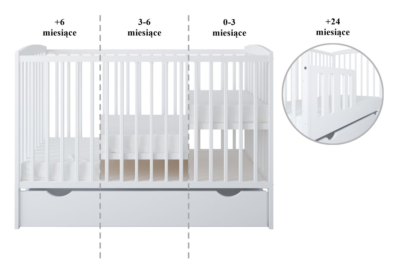 Łóżeczko z szufladą 120x60, które rośnie razem z dzieckiem