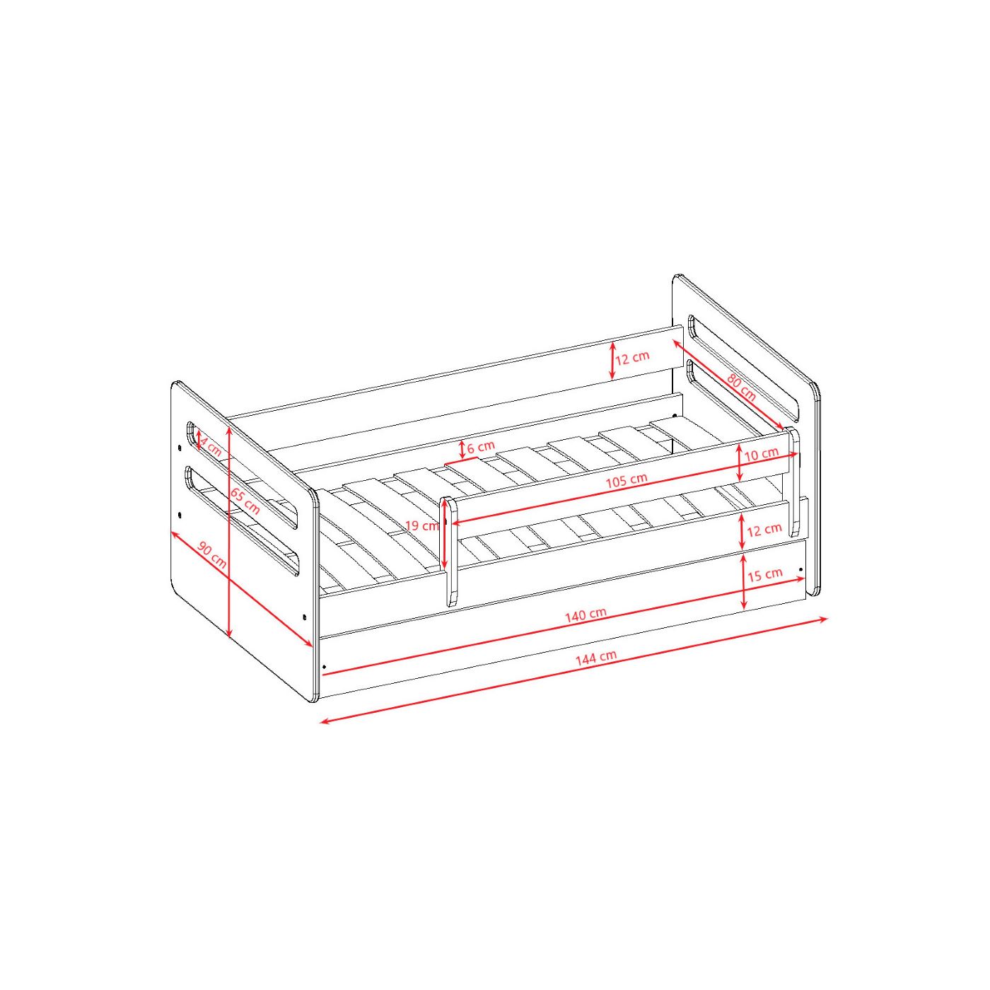 140x80 cm – idealne jako pierwsze „duże” łóżko po łóżeczku,