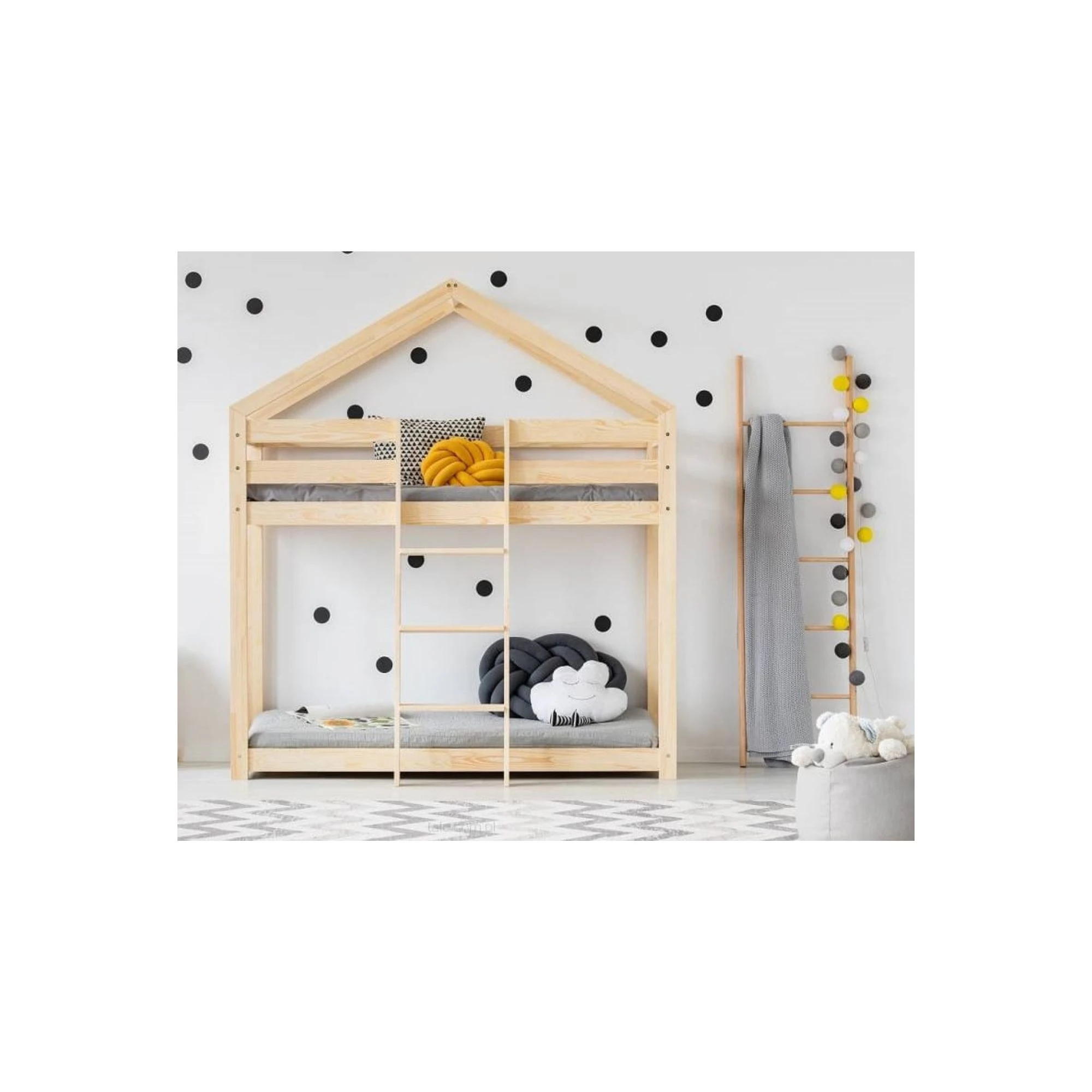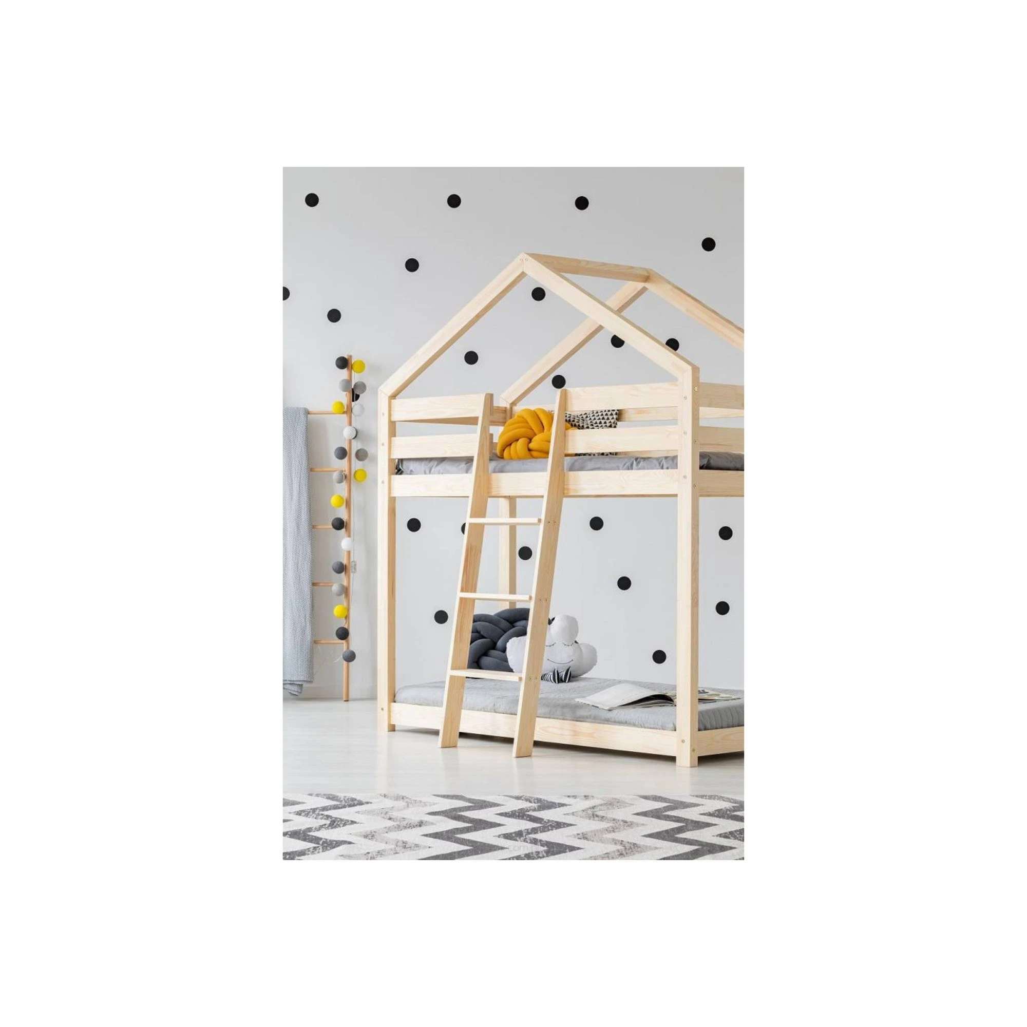 Drewniane łóżko piętrowe Mila, które organizuje przestrzeń snu w pokoju dziecięcym, zapewniając dwa poziomy spania przy zachowaniu niewielkiej powierzchni zabudowy. Ażurowa forma „domku” porządkuje strefę łóżka wizualnie, a konstrukcja oparta na sosnie kl. 1 jest przygotowana do codziennej eksploatacji. Model DMP pozwala dopasować konfigurację do wieku dzieci i układu pokoju poprzez dobór barierki na dolnym poziomie oraz podwyższenie dolnego łóżka.
