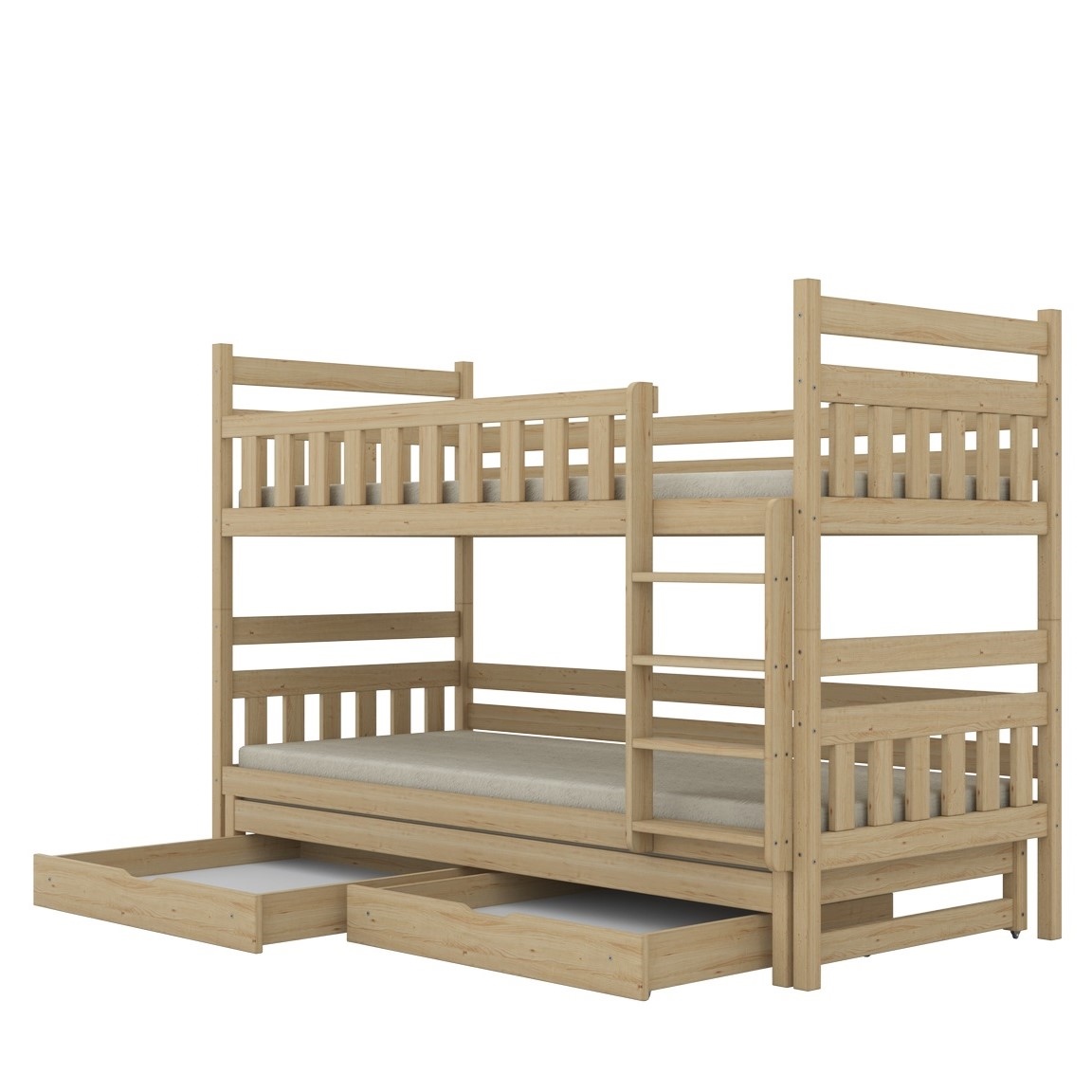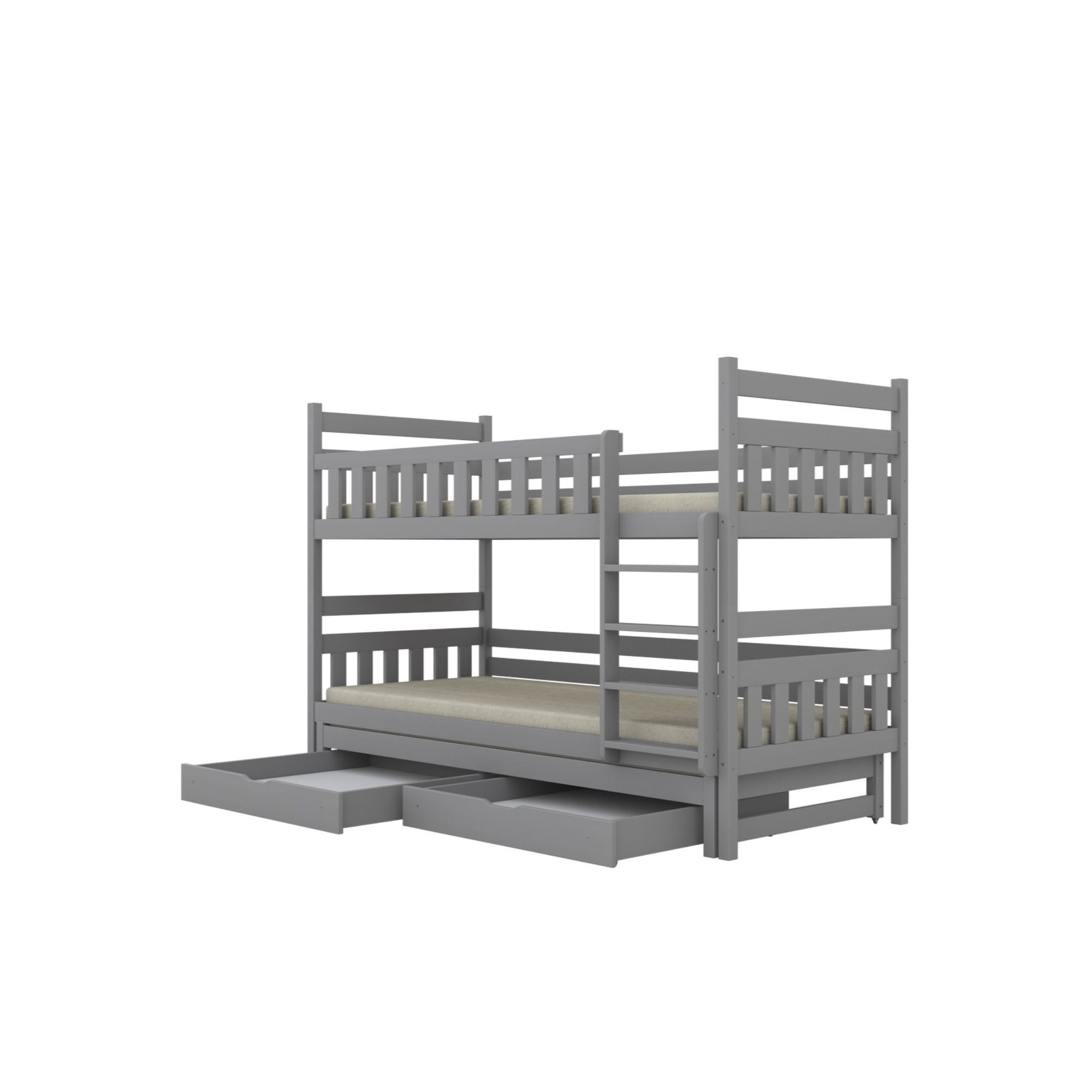 Łóżko piętrowe z dodatkowym spaniem i szufladami - Lumo