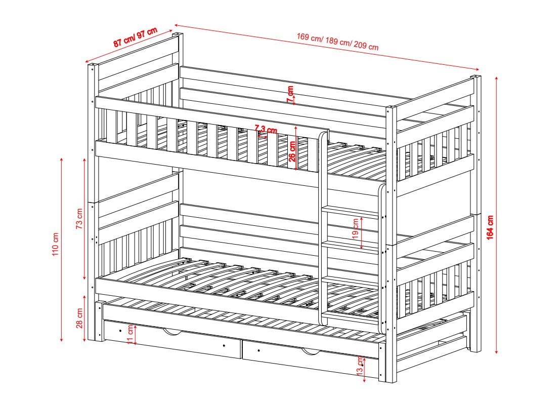 - opcja dokupienia dodatkowej barierki na dolne łóżko,