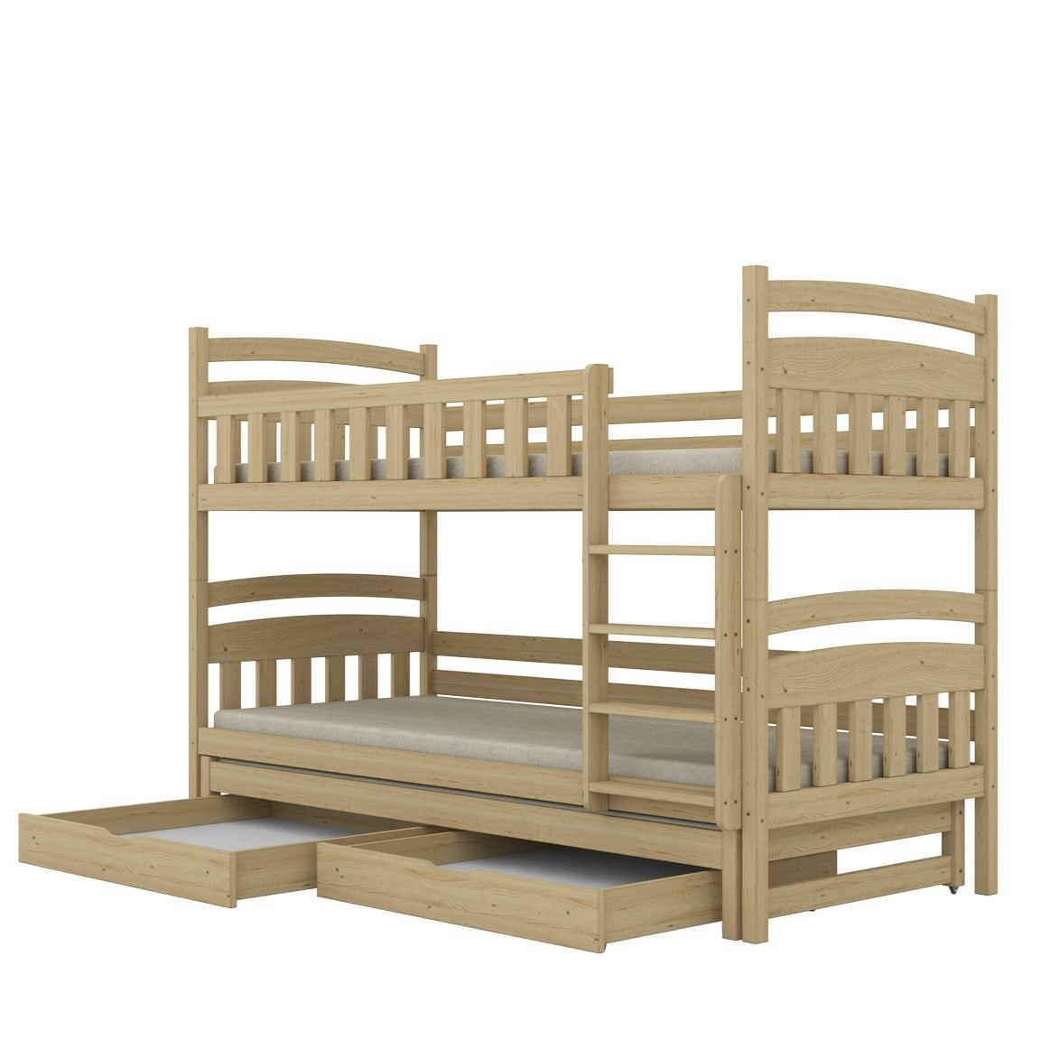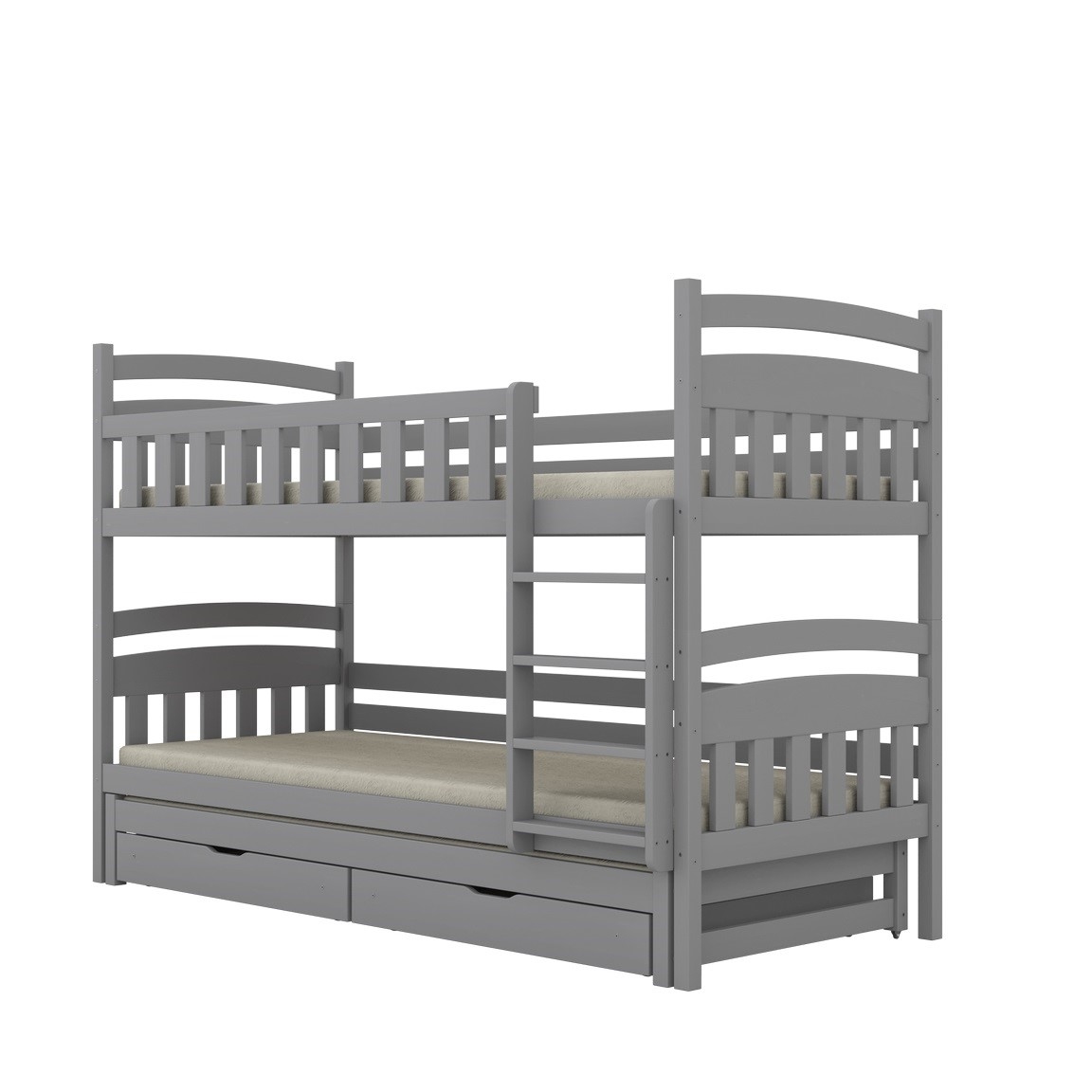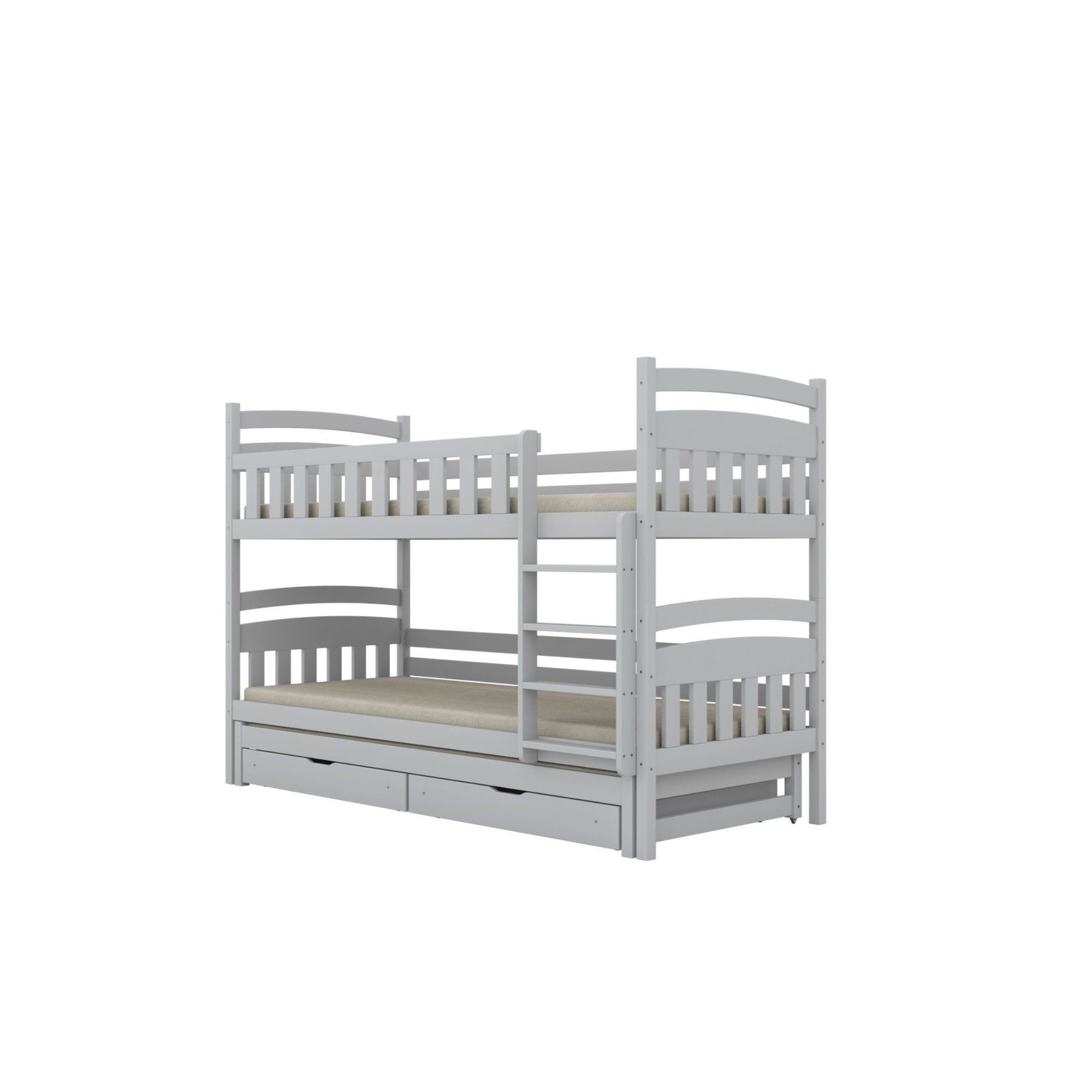 Jeśli szukasz pełnego zestawu rozwiązań w jednym meblu, postaw na Milo z dodatkowym spaniem i szufladami. Trzy wygodne miejsca do spania i dwie praktyczne szuflady – idealne do przechowywania. To kompaktowe łóżko, które sprosta codziennym wyzwaniom rodzin z trójką dzieci lub częstymi gośćmi.