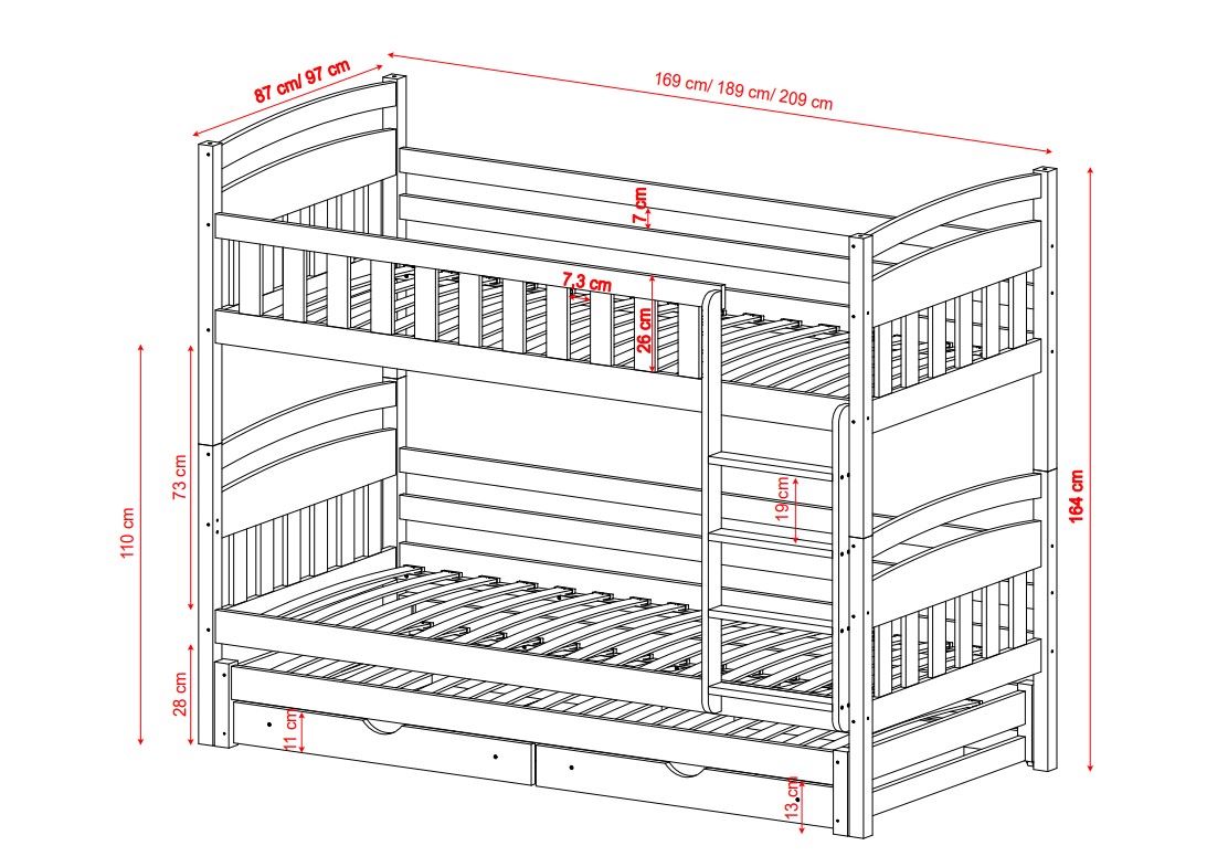 - stabilna drabinka i barierka na górnym łóżku