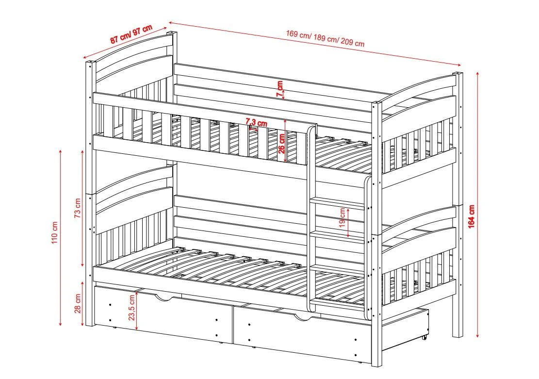 - możliwość dokupienia krótkiej barierki na dolne łóżko,