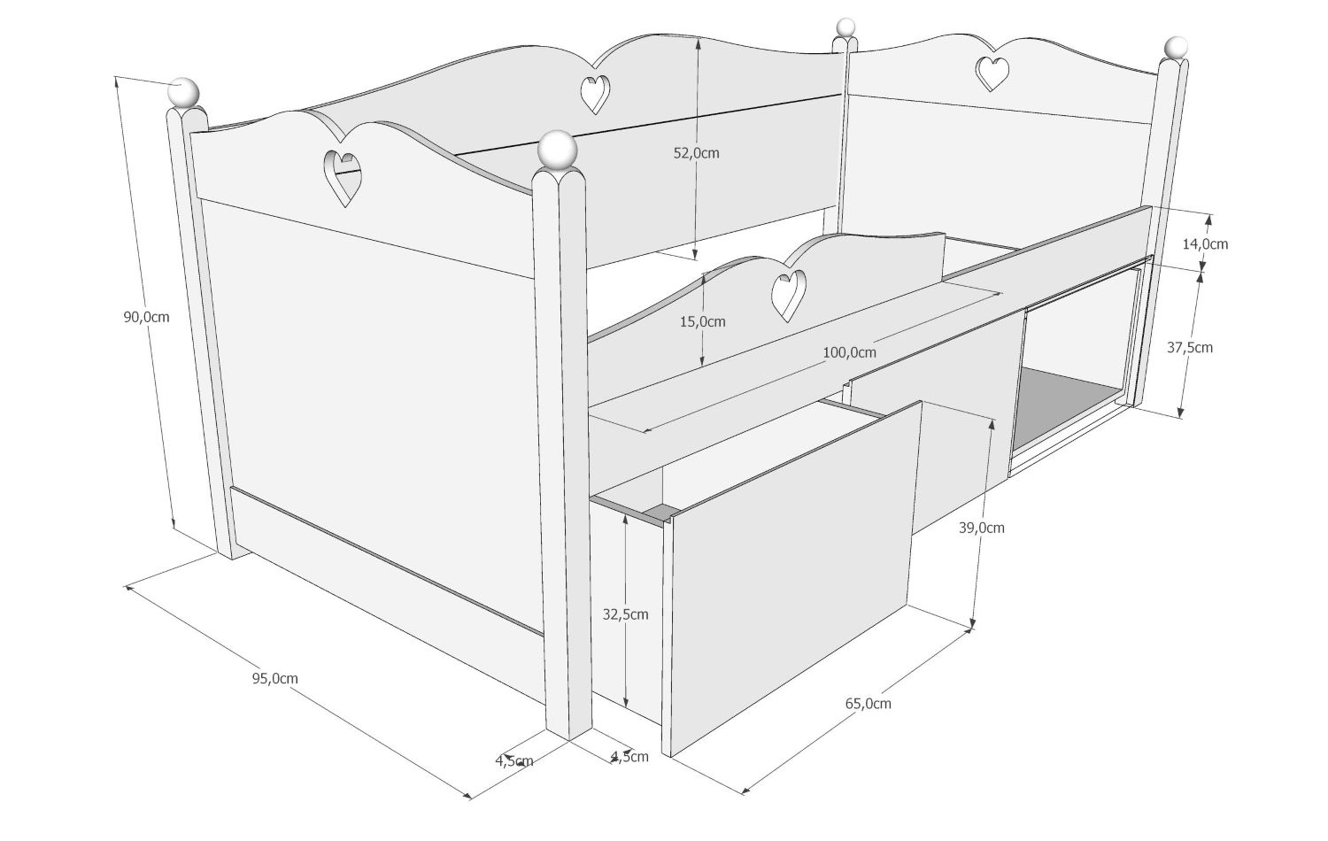 Wymiary łóżka z szufladami dla dziewczynki Bella