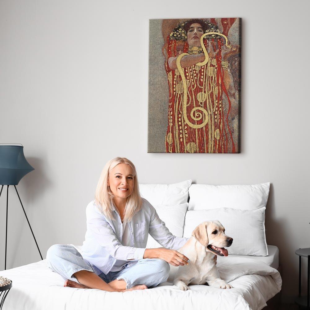 Niepowtarzalne obrazy z estetycznymi motywami są idealnym dopełnieniem eleganckiej aranżacji. Przy odrobinie kreatywności można je z łatwością dopasować do wnętrza urządzonego w każdym stylu. Obraz na płótnie "Obraz - Gustav Klimt – Medycyna (Higiea)" to unikalny element dekoracyjny który jest niemal uniwersalny. Przypadnie do gustu każdemu, kto poszukuje oryginalnych ozdób, aby dopełnić swoją aranżację. Umieść go w swoim wnętrzu, a przekonasz się, że jest już kompletne i nie potrzebujesz już innych dodatków. Nie musisz się obawiać o jakość i wygląd swojej dekoracji. Dostępne w ofercie obrazy na płótnie wiernie odwzorowują detale. Odpowiednio dostosowana rozdzielczość druku gwarantuje intensywność kolorów oraz ostrość prezentowanego motywu. Tego typu produkty to doskonałe rozwiązanie, jeśli wciąż narzekasz na puste miejsce na ścianie i zastanawiasz się, jak je wypełnić. To stylowy element dekoracyjny, dzięki któremu wnętrze staje się wyjątkowo przytulne.
