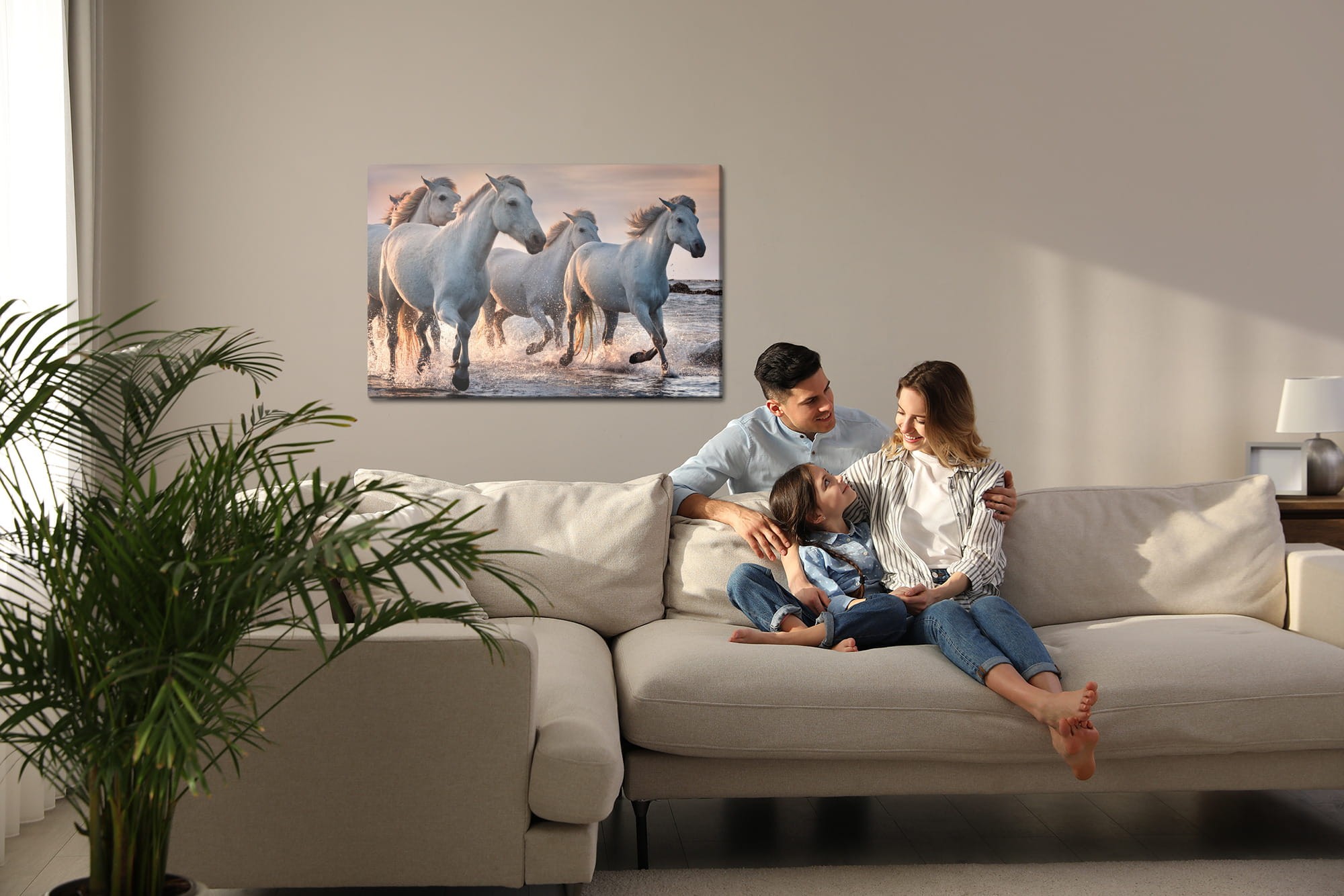 Fotograficzna jakość wydruku, wysokiej jakości płótno naciągnięte na prawdziwą drewnianą ramę. Bezpiecznie zapakowane, gotowe do powieszenia na ścianie. Drukowane w ekologicznej, bezwonnej i w pełni bezpiecznej technologii HP Latex.