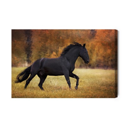 Obraz Na Płótnie Czarny Koń Na Polanie