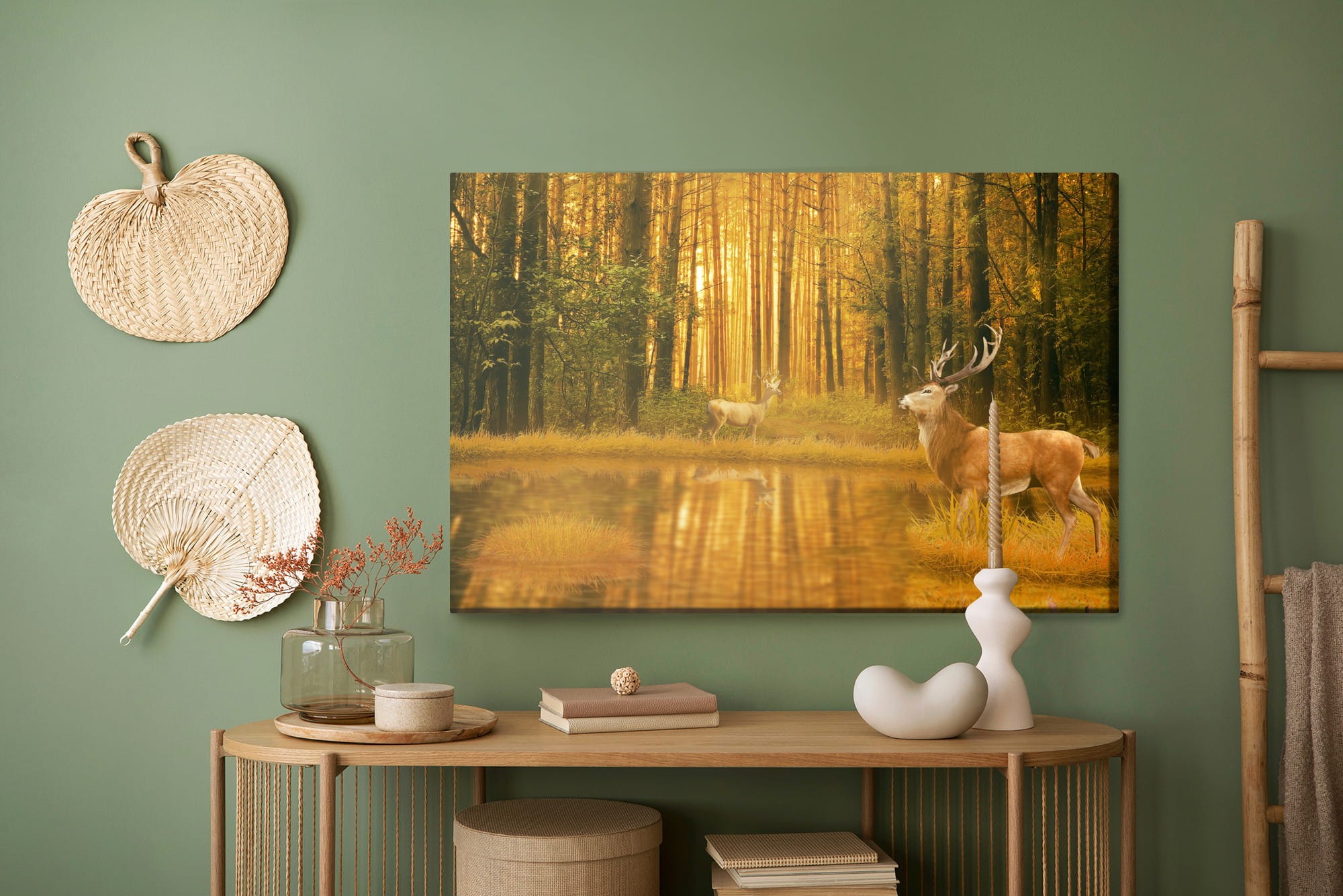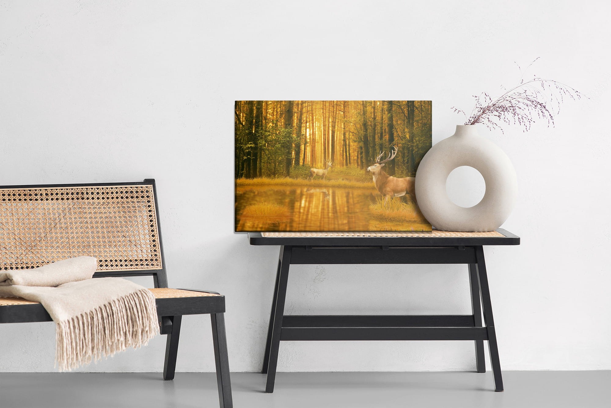 Obraz Na Płótnie Jeleń Nad Jeziorem W Lesie