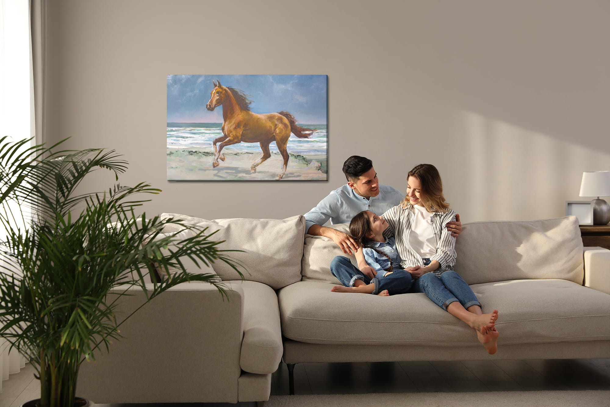 Fotograficzna jakość wydruku, wysokiej jakości płótno naciągnięte na prawdziwą drewnianą ramę. Bezpiecznie zapakowane, gotowe do powieszenia na ścianie. Drukowane w ekologicznej, bezwonnej i w pełni bezpiecznej technologii HP Latex.