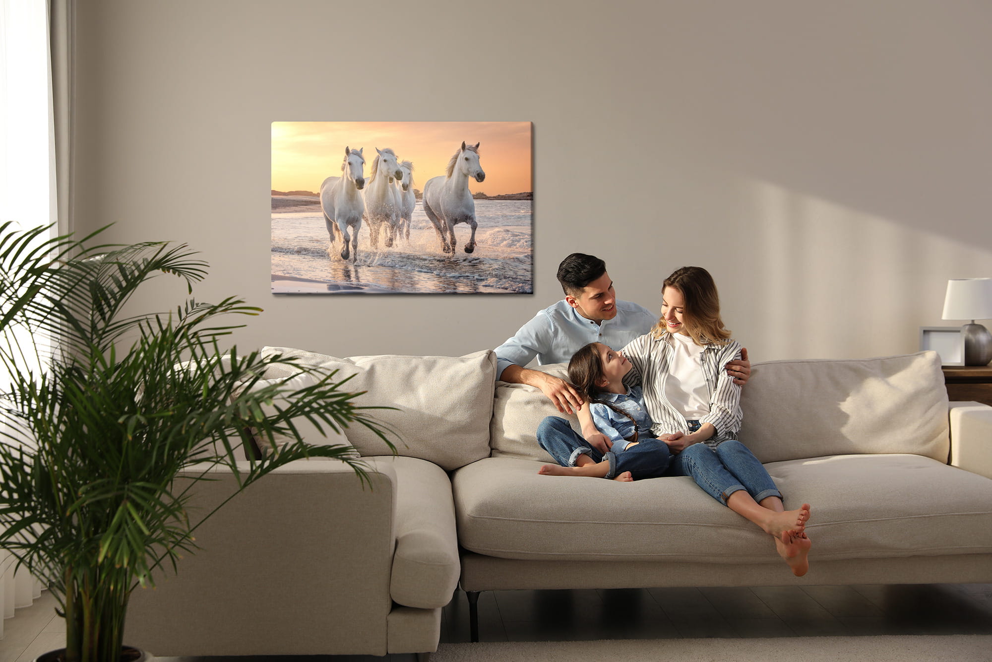 Fotograficzna jakość wydruku, wysokiej jakości płótno naciągnięte na prawdziwą drewnianą ramę. Bezpiecznie zapakowane, gotowe do powieszenia na ścianie. Drukowane w ekologicznej, bezwonnej i w pełni bezpiecznej technologii HP Latex.