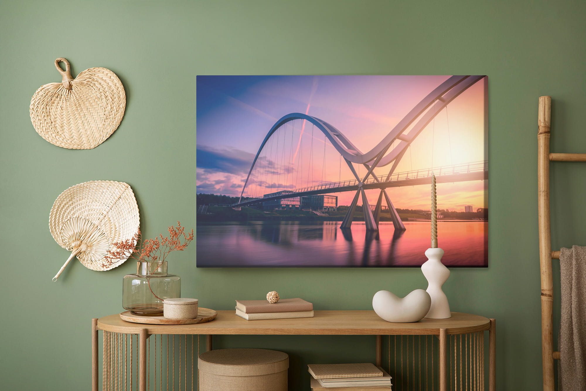 Canvas to płótno syntetyczne o wysokiej gramaturze wynoszącej 260 g/m2. Powierzchnia materiału jest biała, ma strukturę tekstylną. Połączenie struktury materiału z fotograficzną jakością wydruku lateksowego tworzy niepowtarzalne dekoracje do każdego wnętrza. Po zadruku i wycięciu, płótno naciągane jest na krosno z prawdziwego drewna sosnowego. Tak przygotowany produkt jest gotowy do powieszenia na ścianie.