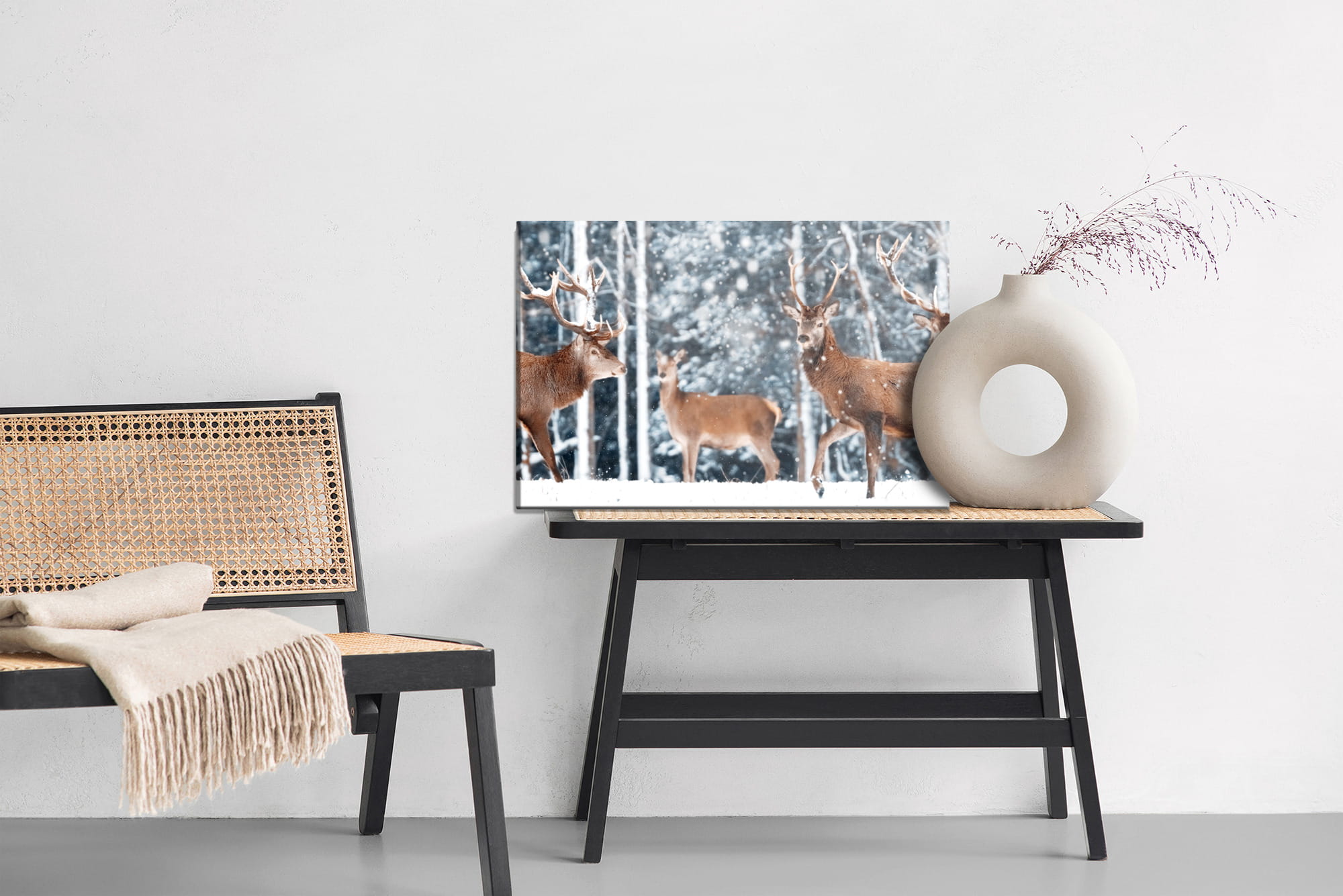 Obraz Na Płótnie Stado Jeleni W Zimowym Lesie