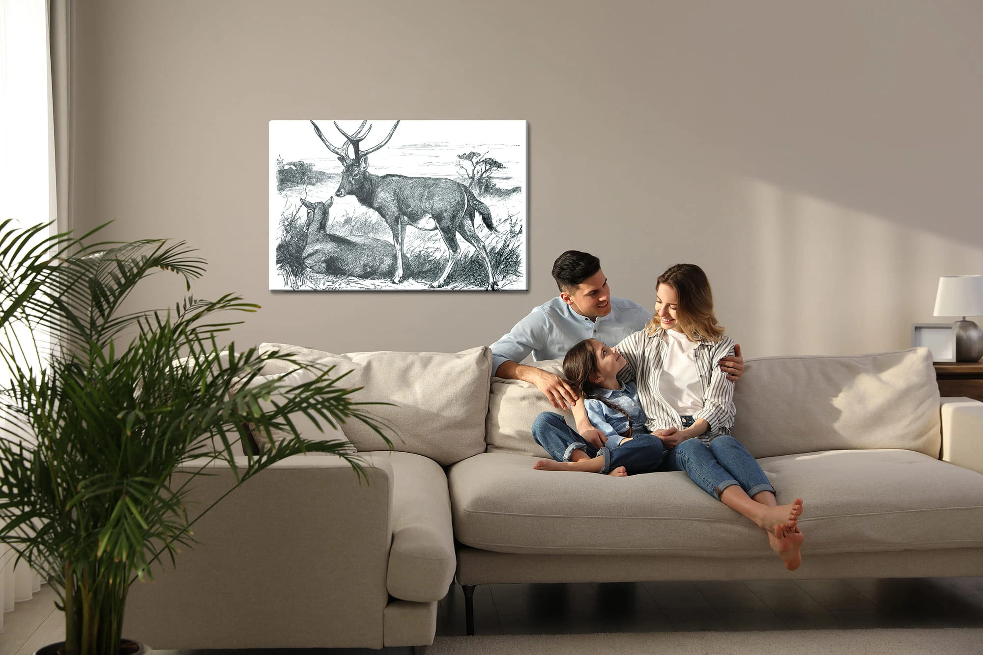 Canvas naturalny to płótno bawełniane o wysokiej gramaturze wynoszącej 260 g/m2 specjalnie przygotowane do zadruku. Powierzchnia materiału jest biała, ma strukturę tekstylną. Połączenie struktury materiału z fotograficzną jakością wydruku lateksowego tworzy niepowtarzalne dekoracje do każdego wnętrza. Po zadruku i wycięciu, płótno naciągane jest na krosno z prawdziwego drewna sosnowego. Tak przygotowany produkt jest gotowy do powieszenia na ścianie. W pełni naturalny i ekologiczny.