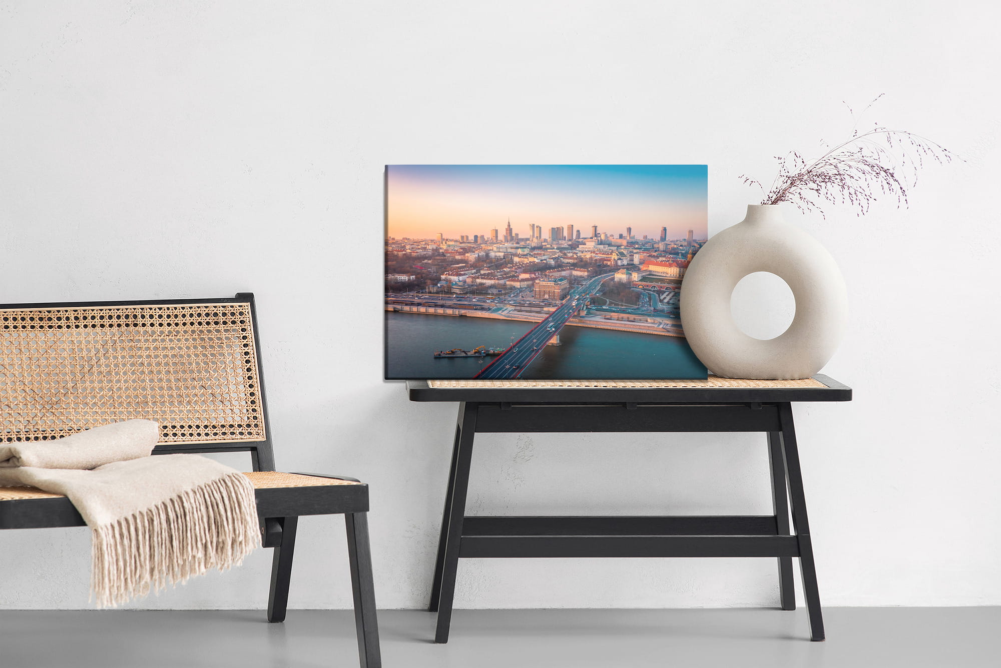 Canvas naturalny to płótno bawełniane o wysokiej gramaturze wynoszącej 260 g/m2 specjalnie przygotowane do zadruku. Powierzchnia materiału jest biała, ma strukturę tekstylną. Połączenie struktury materiału z fotograficzną jakością wydruku lateksowego tworzy niepowtarzalne dekoracje do każdego wnętrza. Po zadruku i wycięciu, płótno naciągane jest na krosno z prawdziwego drewna sosnowego. Tak przygotowany produkt jest gotowy do powieszenia na ścianie. W pełni naturalny i ekologiczny.