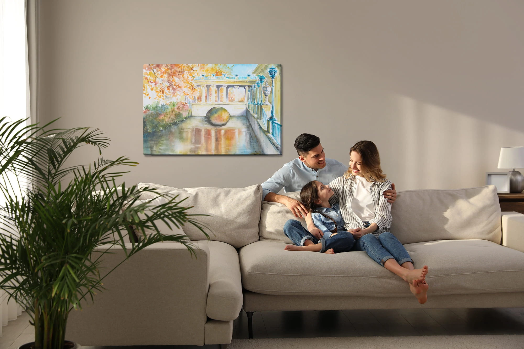 Fotograficzna jakość wydruku, wysokiej jakości płótno naciągnięte na prawdziwą drewnianą ramę. Bezpiecznie zapakowane, gotowe do powieszenia na ścianie. Drukowane w ekologicznej, bezwonnej i w pełni bezpiecznej technologii HP Latex.