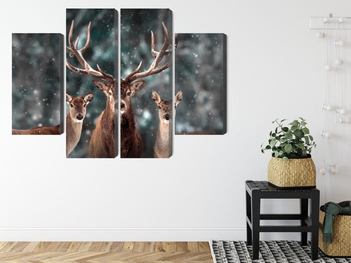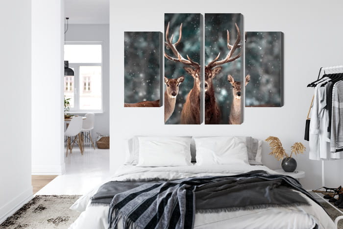 Obraz Wieloczęściowy Jeleń I Dwie Łanie W Lesie