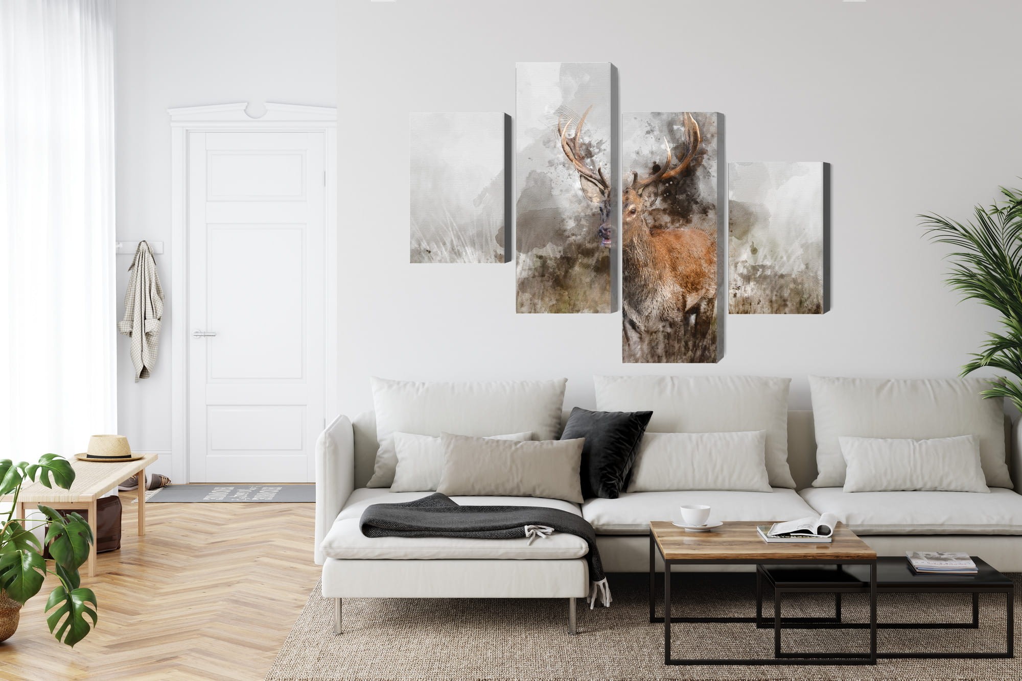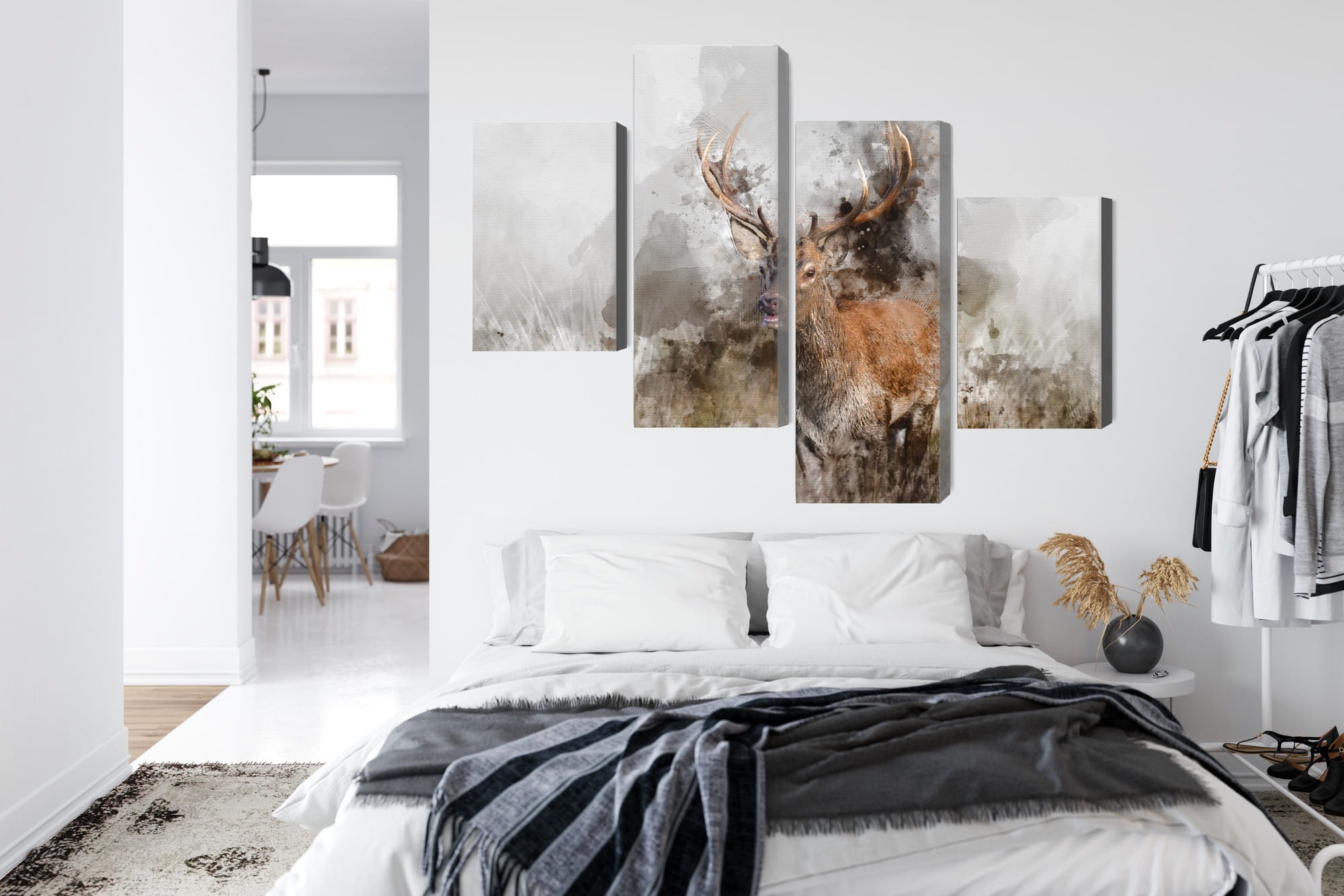 Obraz Wieloczęściowy Jeleń Malowany Akwarelą 3D