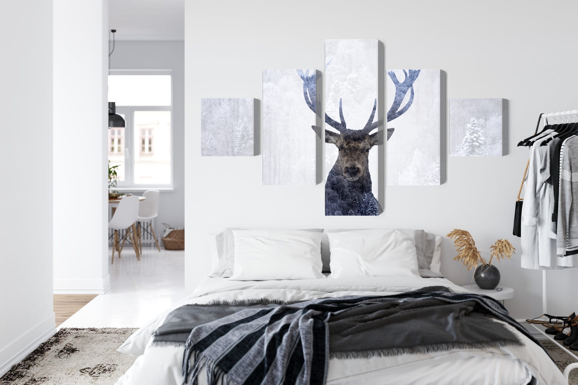 Obraz Wieloczęściowy Jeleń W Zimowym Lesie 3D