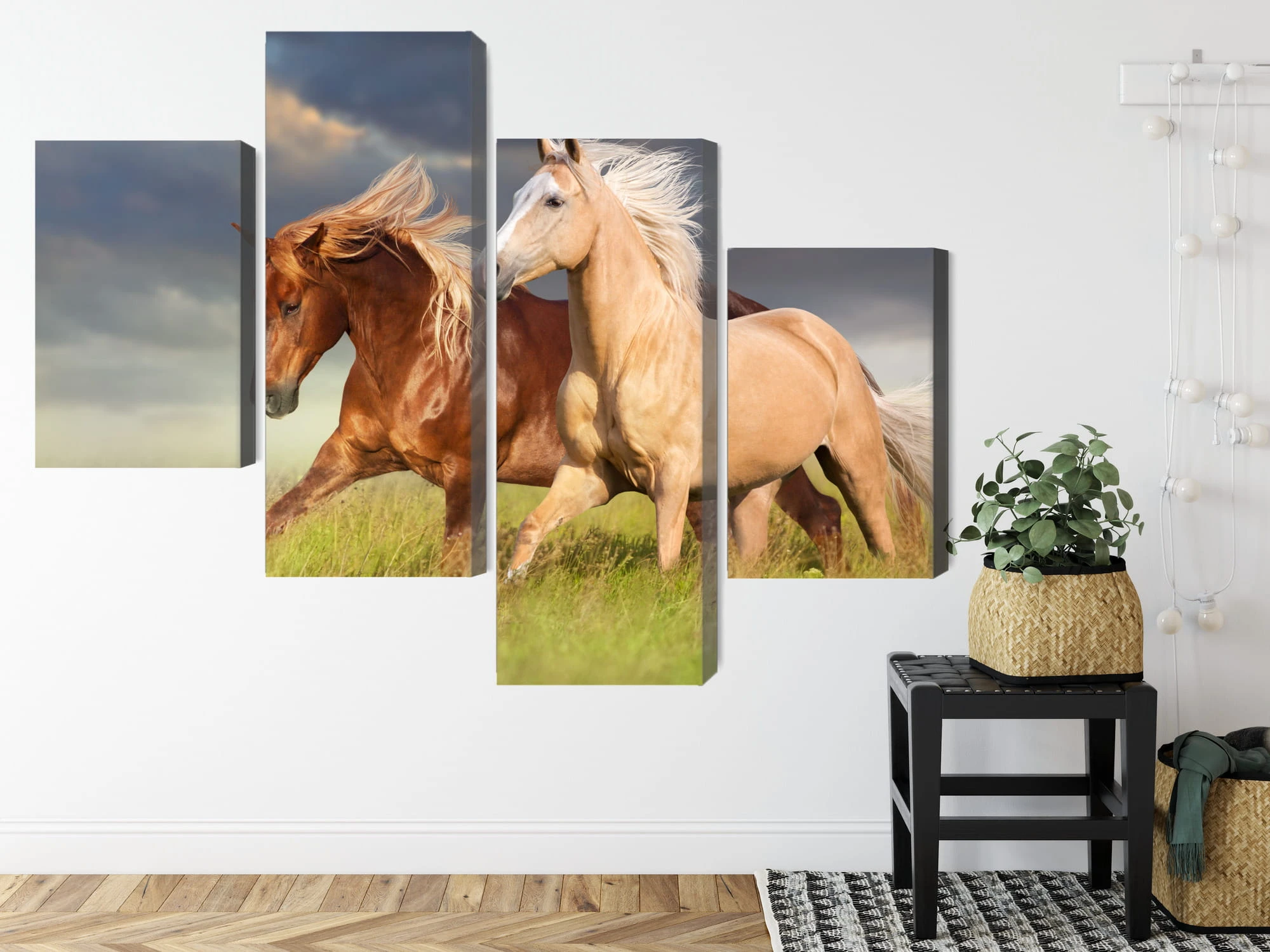 Obraz Wieloczęściowy Konie Galopujące Po Łące 3D