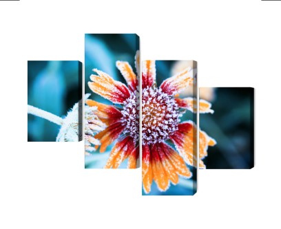 Obraz Wieloczęściowy Kwiaty Rudbeckia Pokryte Szronem