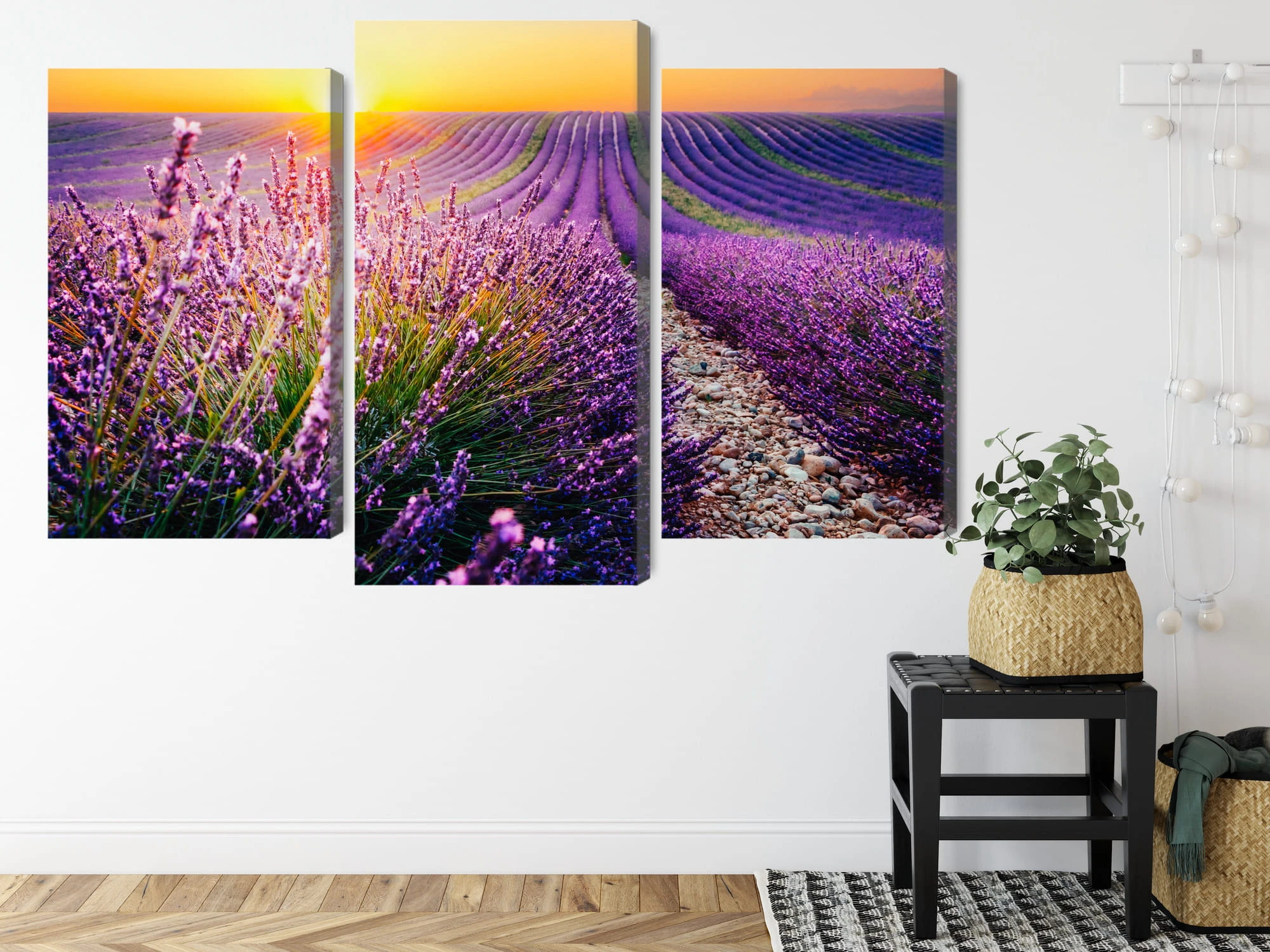 Obraz Wieloczęściowy Lawendowe Pole O Zachodzie Słońca 3D
