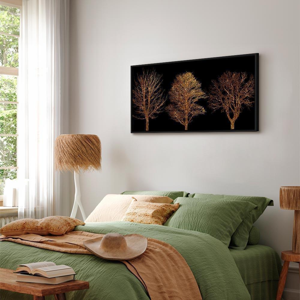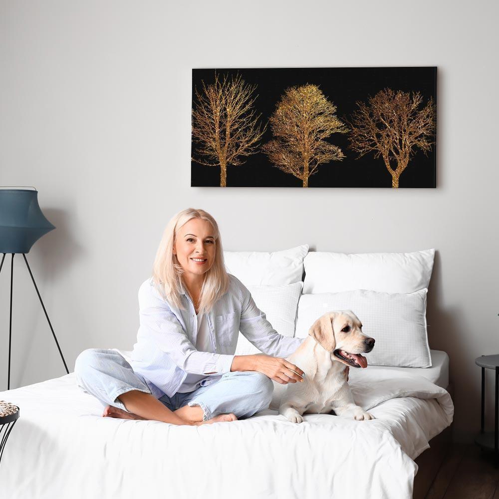 Niepowtarzalne obrazy z estetycznymi motywami są idealnym dopełnieniem eleganckiej aranżacji. Przy odrobinie kreatywności można je z łatwością dopasować do wnętrza urządzonego w każdym stylu. Obraz na płótnie "Obraz - Złoty las (1-częściowy) szeroki" to unikalny element dekoracyjny który jest niemal uniwersalny. Przypadnie do gustu każdemu, kto poszukuje oryginalnych ozdób, aby dopełnić swoją aranżację. Umieść go w swoim wnętrzu, a przekonasz się, że jest już kompletne i nie potrzebujesz już innych dodatków. Nie musisz się obawiać o jakość i wygląd swojej dekoracji. Dostępne w ofercie obrazy na płótnie wiernie odwzorowują detale. Odpowiednio dostosowana rozdzielczość druku gwarantuje intensywność kolorów oraz ostrość prezentowanego motywu. Tego typu produkty to doskonałe rozwiązanie, jeśli wciąż narzekasz na puste miejsce na ścianie i zastanawiasz się, jak je wypełnić. To stylowy element dekoracyjny, dzięki któremu wnętrze staje się wyjątkowo przytulne.