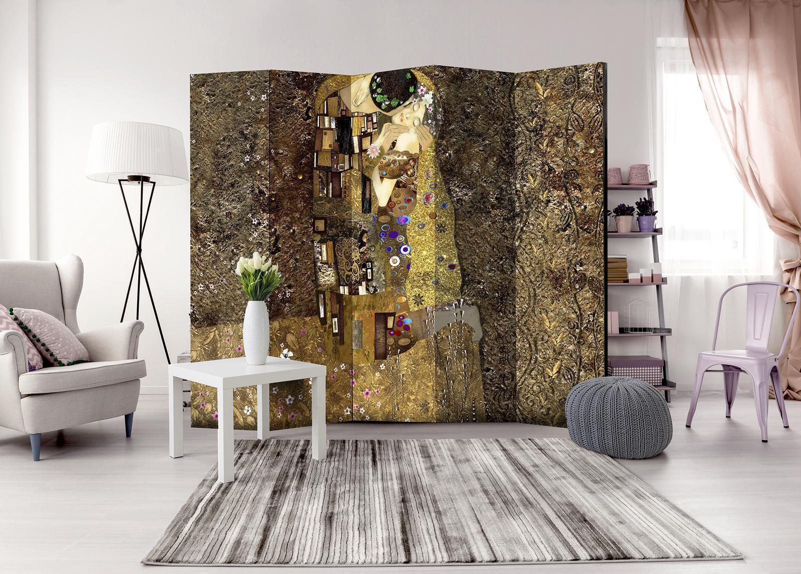 Parawan "Parawan - Złoty pocałunek II" jest wyjątkowo użytecznym dodatkiem do domu czy mieszkania. Znajduje zastosowanie w kawalerkach, jak również w bardziej przestronnych wnętrzach. Można wykorzystać go do wydzielenia np. niewielkiej garderoby w sypialni lub osobnych stref dla rodzeństwa mieszkającego w jednym pokoju. Solidny parawan drewniany z naszej oferty doskonale sprawdza się też w salonach kosmetycznych, butikach, zakładach fryzjerskich czy nawet gabinetach lekarskich. Stanowi oryginalną i niezwykle stylową dekorację ułatwiającą zachowanie dyskrecji oraz prywatności. Z uwagi na bardzo staranne wykonanie parawan dekoracyjny będzie idealnym uzupełnieniem aranżacji. Wprowadzi ład do wnętrza, a możliwość dopasowania odpowiedniego wzoru ułatwia uzyskanie spójnej całości. Parawany są wykończone satynową wstążką, co nie tylko poprawia walory estetyczne, ale dodatkowo wzmacnia konstrukcję. Flizelinowe płótno jest miłe w dotyku i pozbawione widocznych zszywek, dlatego są to odpowiednie produkty do miejsc, gdzie estetyka odgrywa istotną rolę. Parawan dekoracyjny "Parawan - Złoty pocałunek II" przypadnie do gustu nawet bardzo wymagającym osobom.