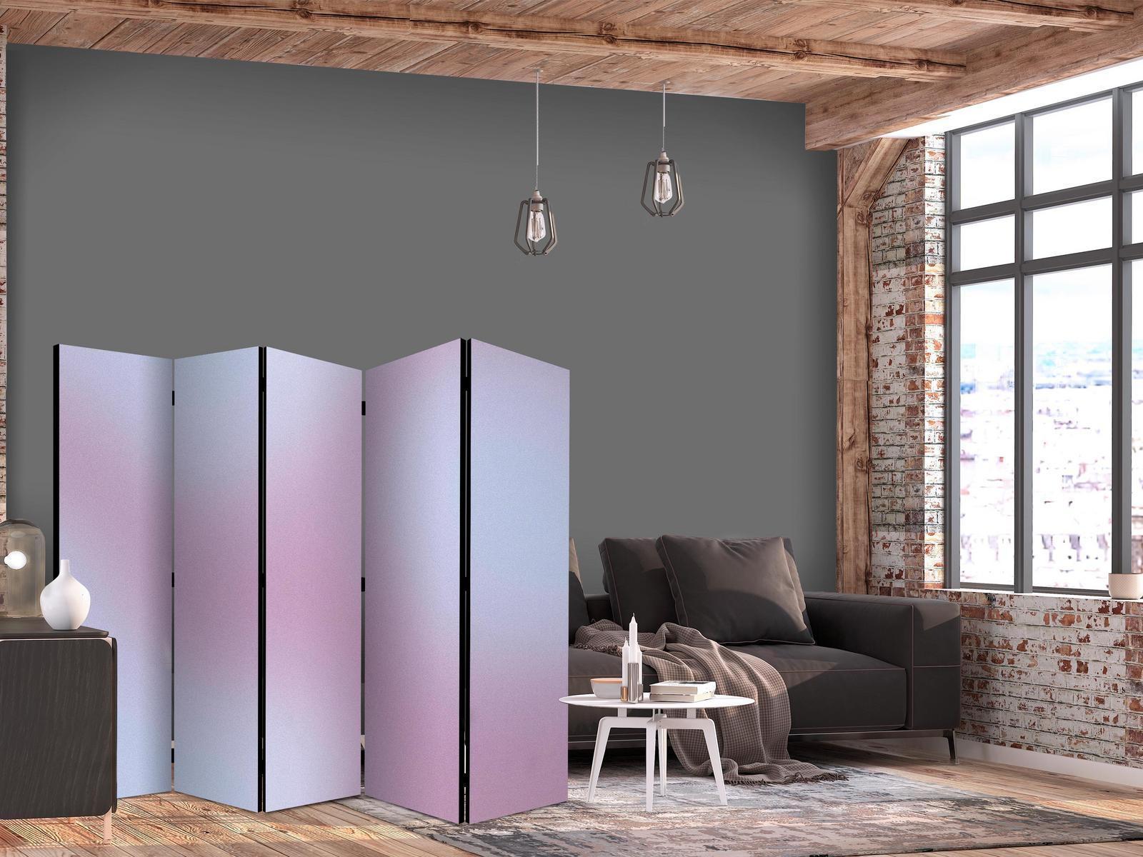 Parawan "Parawan - Złożony gradient - kompozycja gradientowa w nostalgicznych kolorach" to element wyposażenia dający wiele możliwości. Cechuje go m.in. praktyczność. Jego podstawowym zadaniem jest podzielenie przestrzeni na kilka stref w dyskretny i estetyczny sposób. Parawany pokojowe pozwalają na odseparowanie w ciekawy sposób części przeznaczonej do relaksu od tej wyznaczonej do pracy. Dlatego często znajdują one zastosowanie w salonie. Parawany pozwalają też na sprytne ukrycie czegoś, co nie powinno być w pełni widoczne, przykładowo stojaka z ubraniami czy też suszarki z praniem. Można wykorzystać je więc na różne sposoby, zależnie od własnych potrzeb i wymagań. Dostępne w naszej ofercie parawany pokojowe to flizelinowe płótno zamocowane na drewnianym stelażu. Wyróżniają się bardzo solidną konstrukcją, a do wyboru są dwa formaty: 3-częściowy oraz 5-częściowy. Poszczególne elementy są ze sobą połączone za pomocą metalowych, mocnych zawiasów. Złożenie i rozłożenie parawanu nie stanowi żadnego problemu.