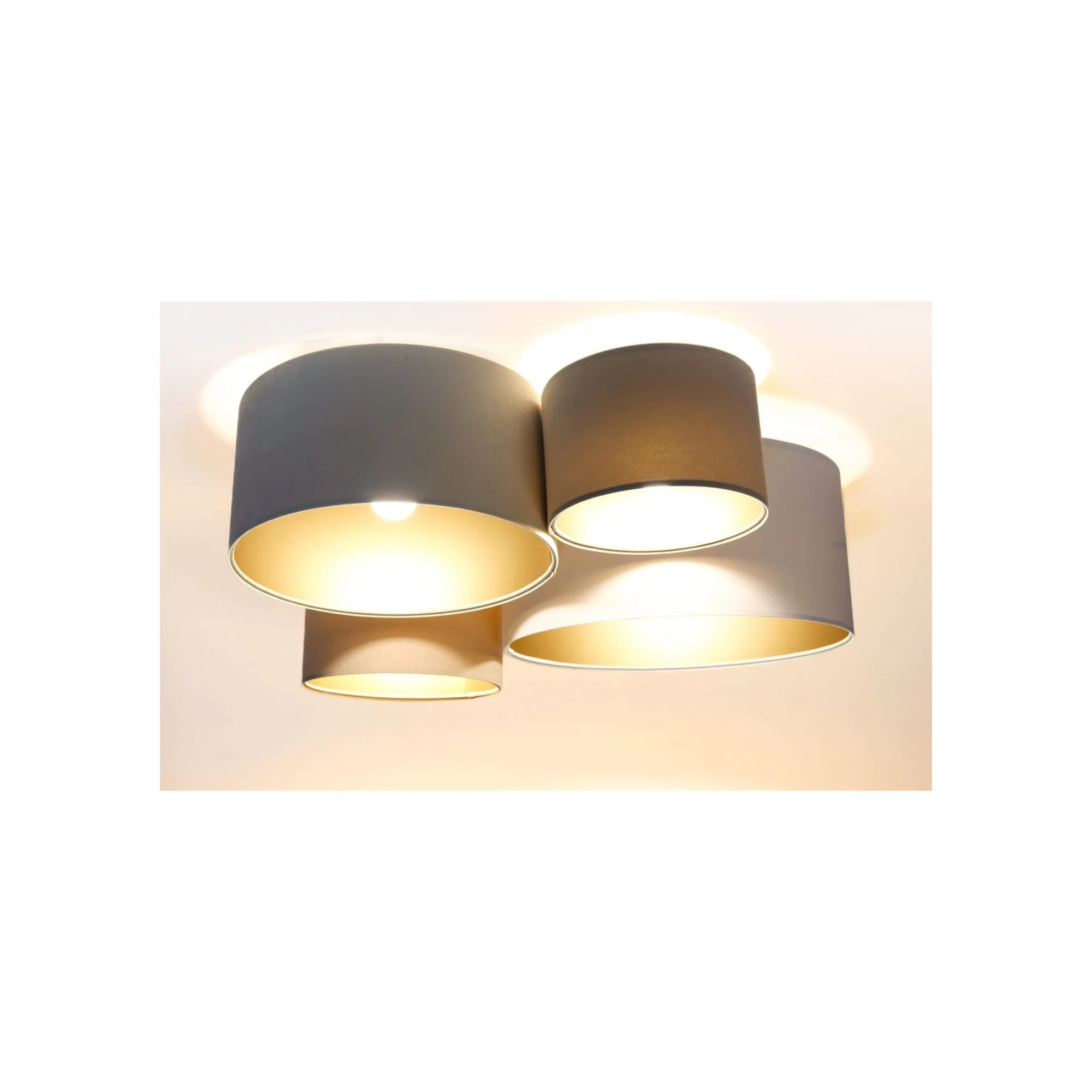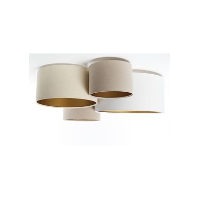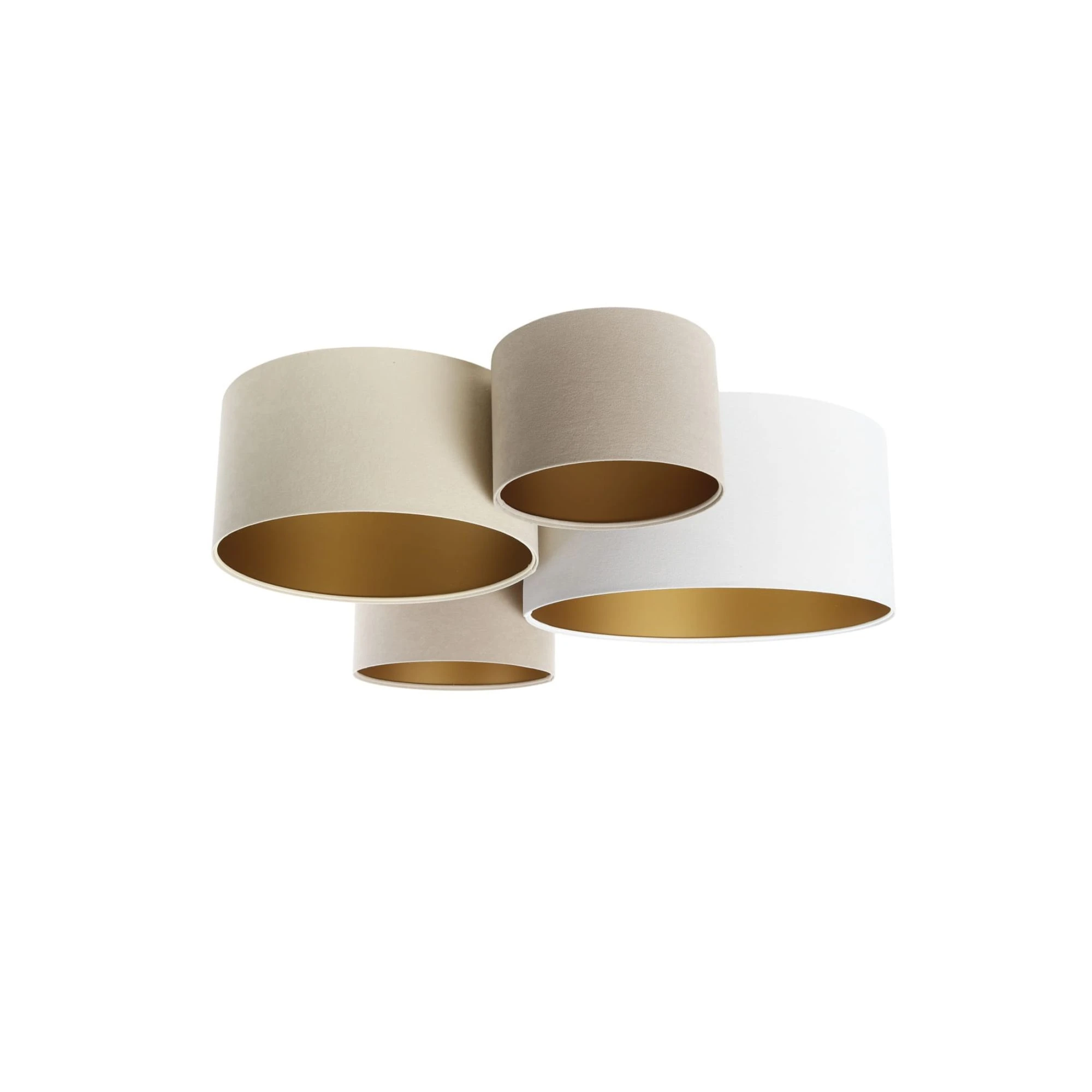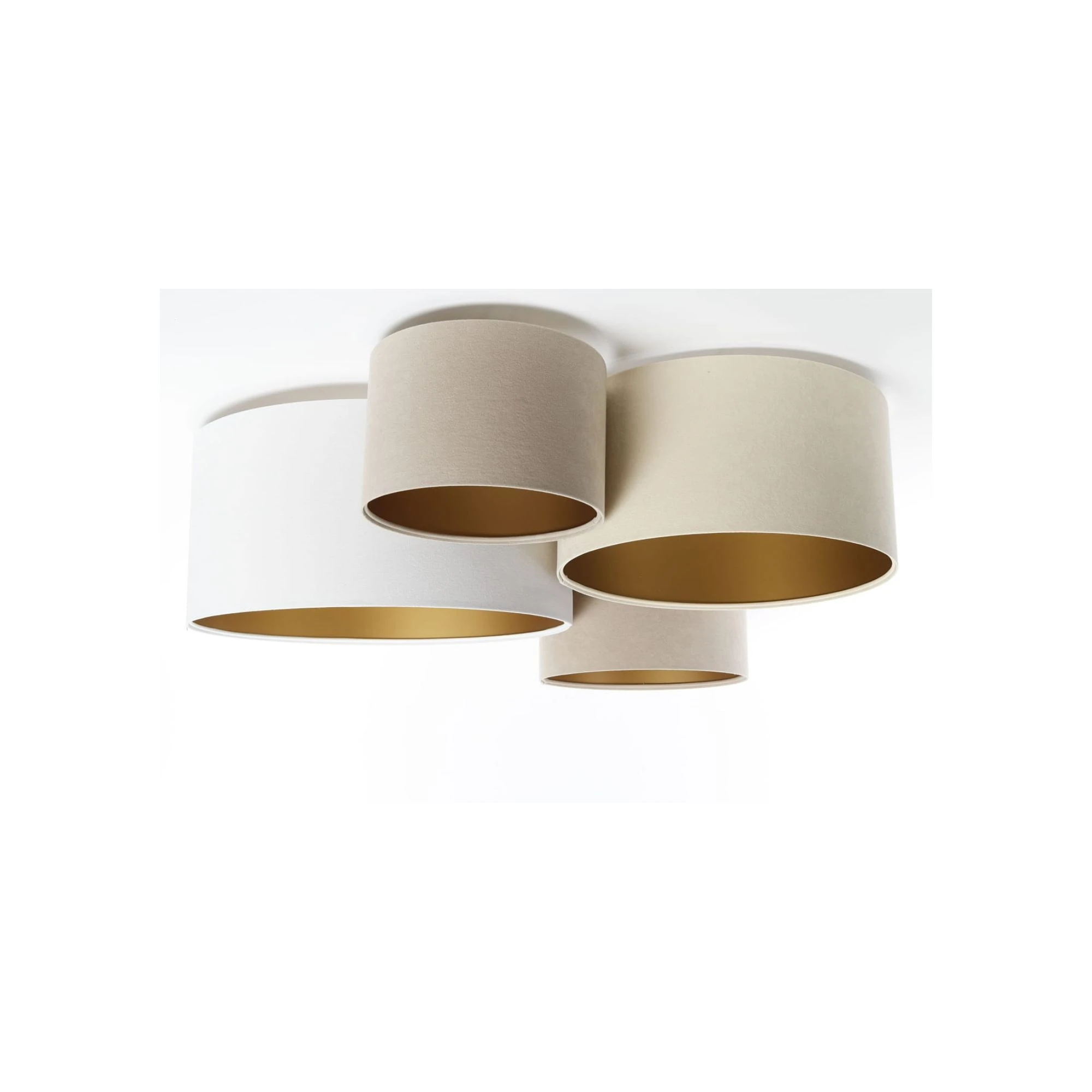 Plafon beżowo-biało-kremowy łączy kilka jasnych odcieni, dzięki czemu wygląda miękko, lekko i bardzo naturalnie. Cztery welurowe abażury tworzą nowoczesną kompozycję, a złote wnętrze subtelnie ociepla światło. To lampa sufitowa do pokoju dziecka lub nastolatka, która dekoruje wnętrze, ale go nie przytłacza, z darmową dostawą na dedekids.pl.