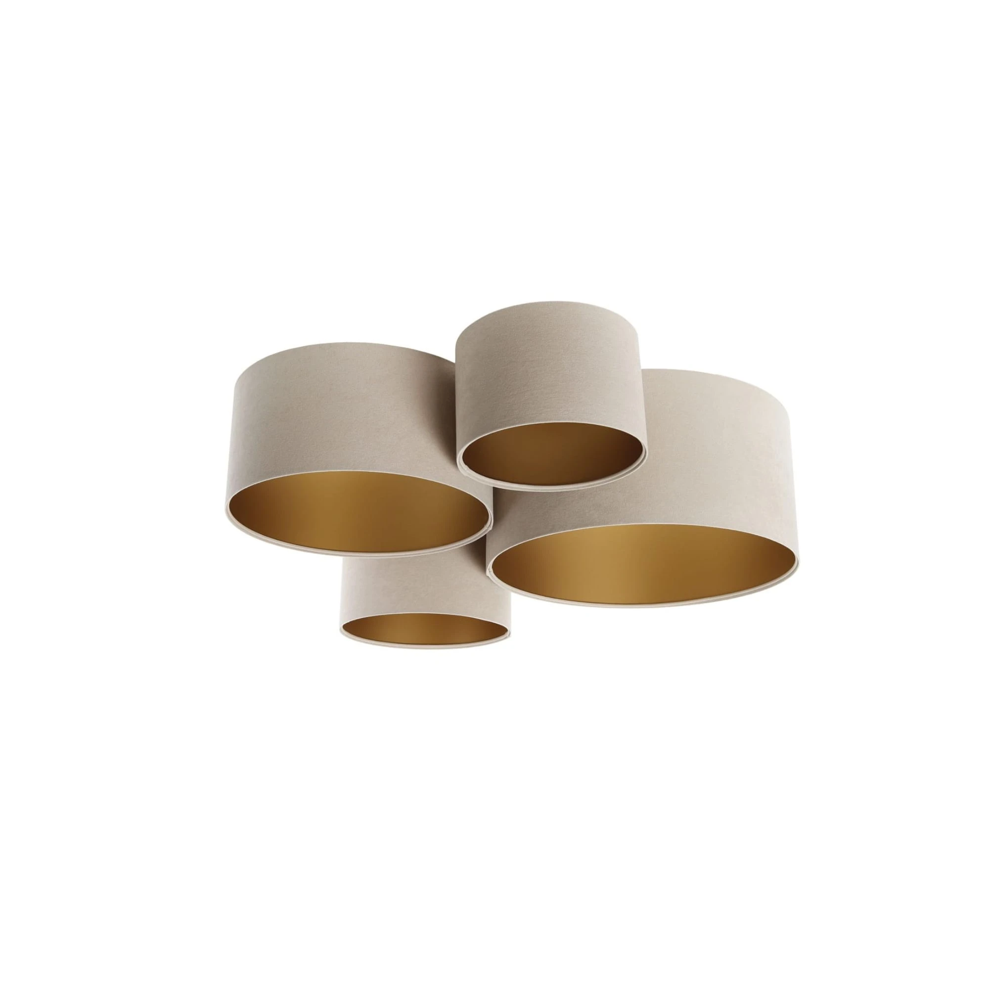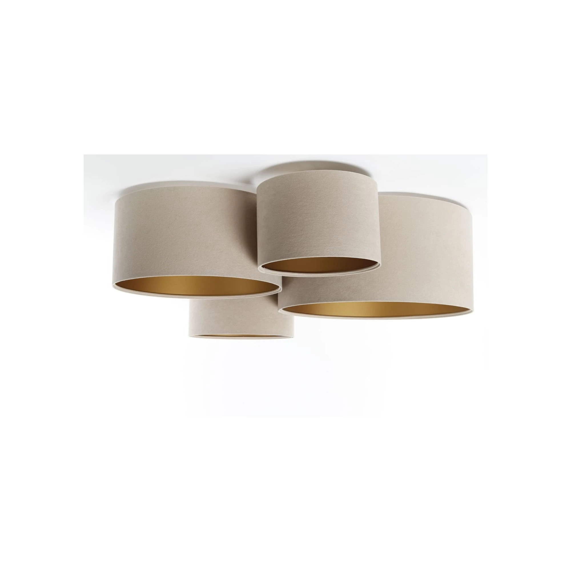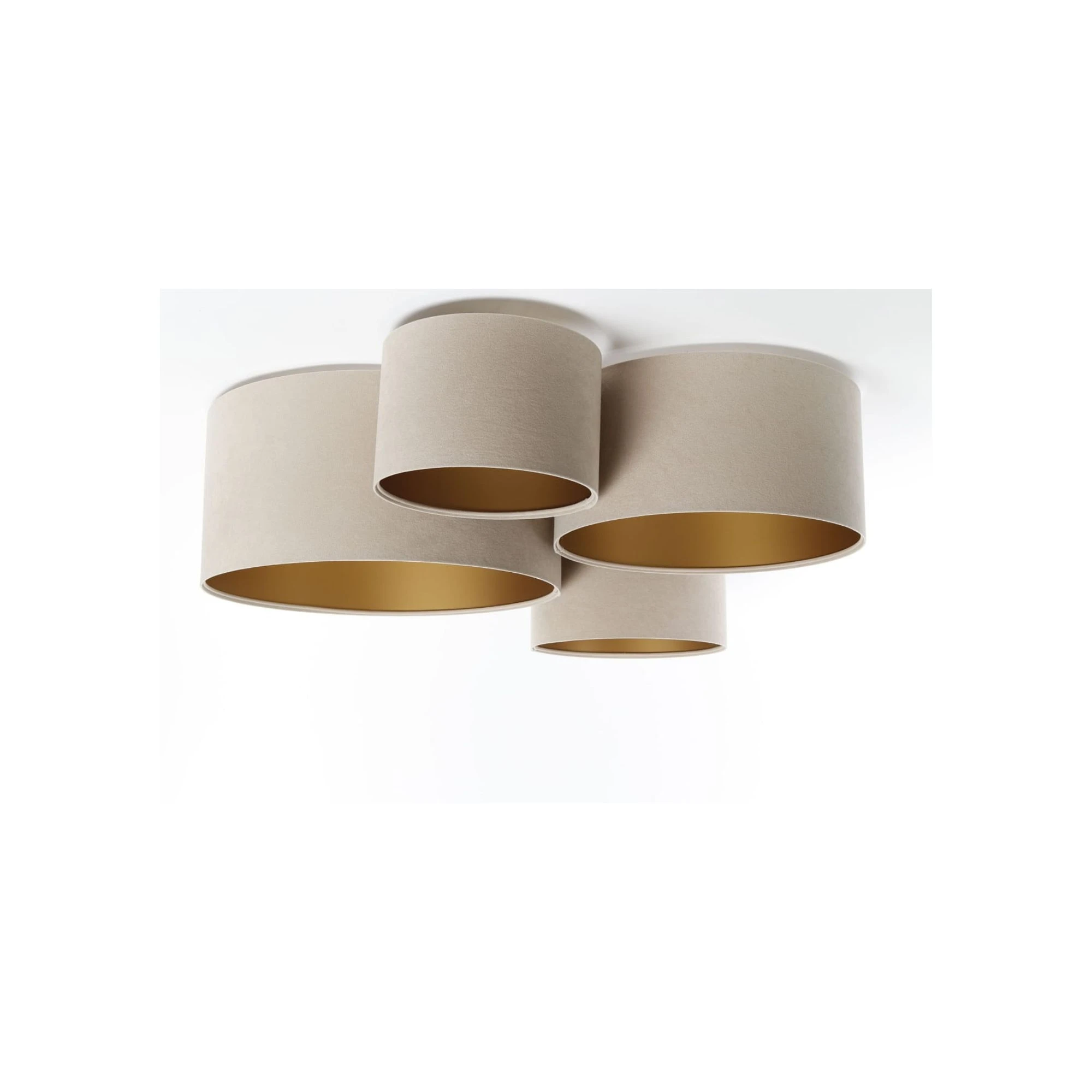 Plafon beżowy to nowoczesna lampa sufitowa, która łączy dekoracyjny wygląd z funkcjonalnością. Cztery welurowe abażury w różnych rozmiarach tworzą lekką, harmonijną kompozycję, a złote wnętrze dodaje światłu przyjemnego, ciepłego poblasku. To świetny wybór do pokoju dziecka lub nastolatka, także przy niższym suficie, z darmową dostawą na dedekids.pl.
