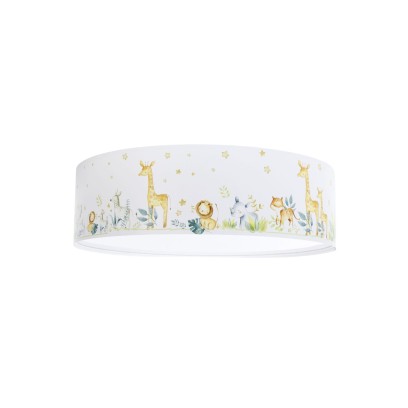 Model Sweet Dreams łączy uniwersalną kolorystykę z delikatnym, dziecięcym wzorem. Jasny abażur z nadrukiem lateksowym wprowadza do wnętrza lekkość, a sympatyczne safari sprawia, że lampa staje się także dekoracją pokoju. To dobry wybór do aranżacji niemowlęcych, dziecięcych i przedszkolnych.