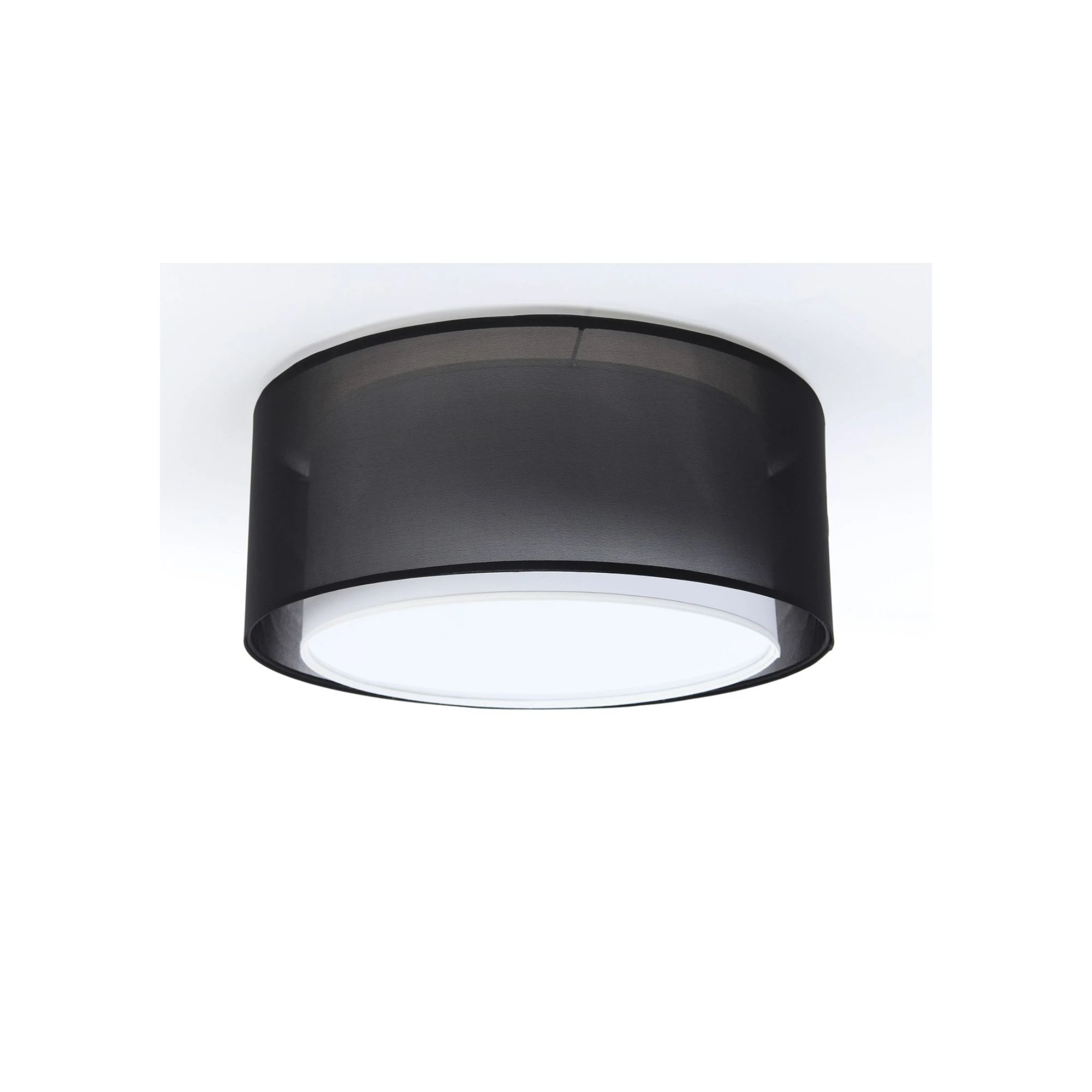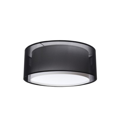 Plafon ma kształt dwuściennego walca, a jego zewnętrzna ścianka została wykonana z półprzezroczystej tkaniny. Dzięki temu nawet czarny model zachowuje wizualną lekkość i nie daje ciężkiego efektu na suficie.
