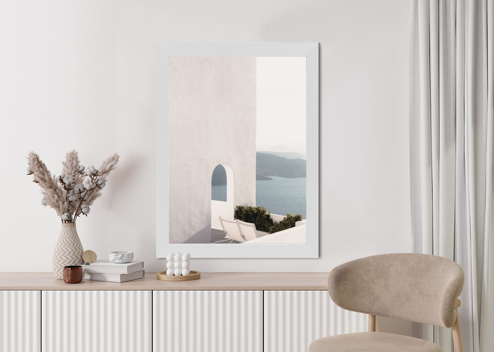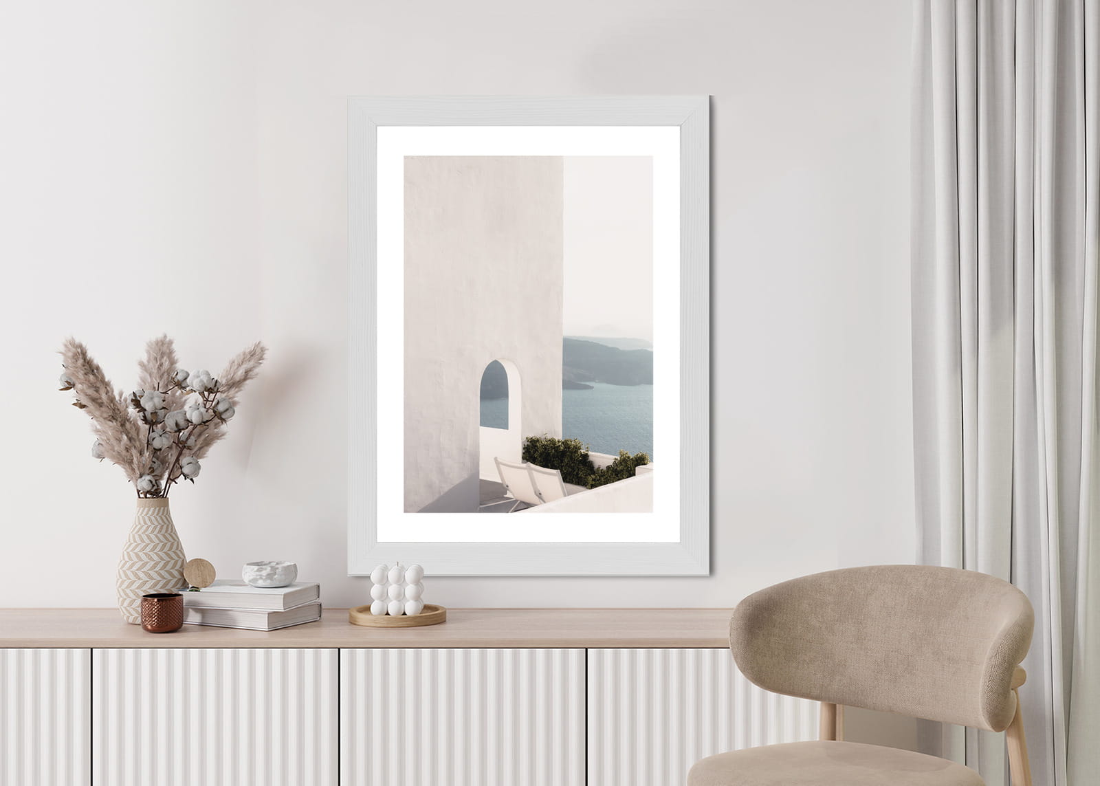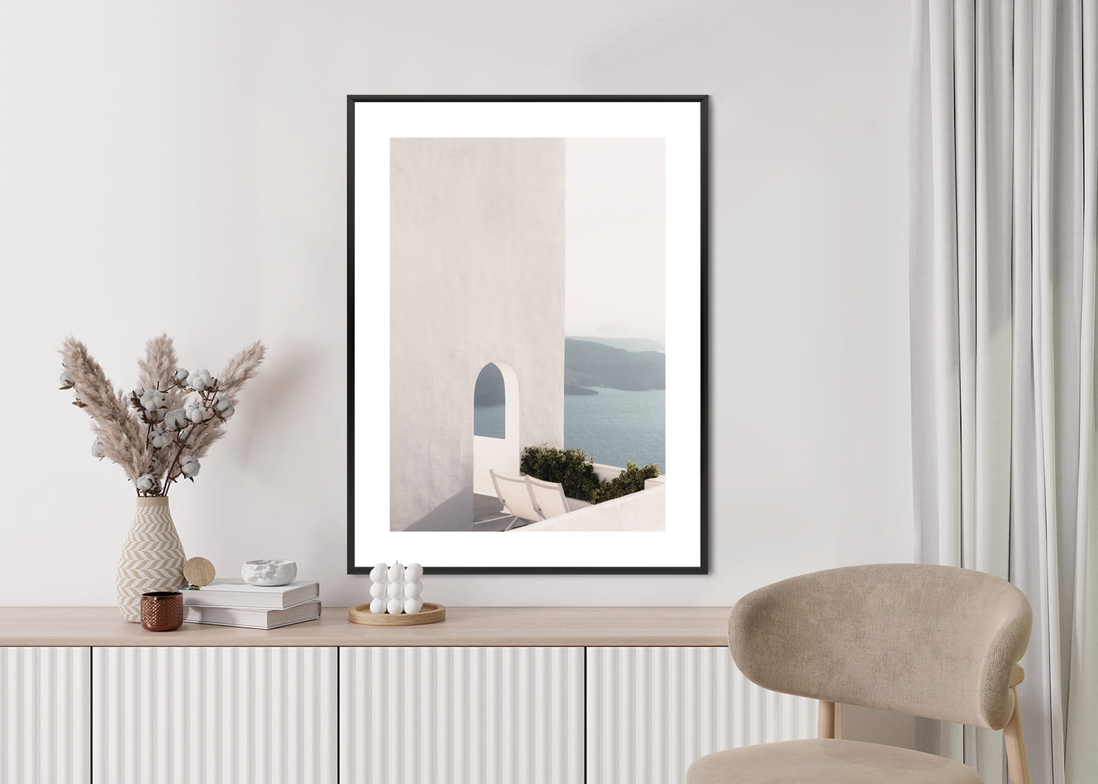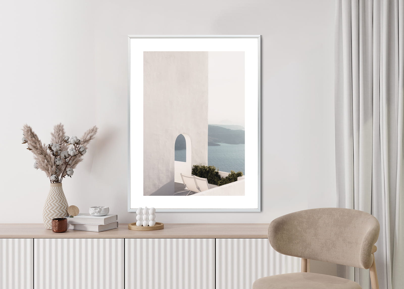 Plakat Biała Architektura Na Santorini Z Widokiem Na Morze
