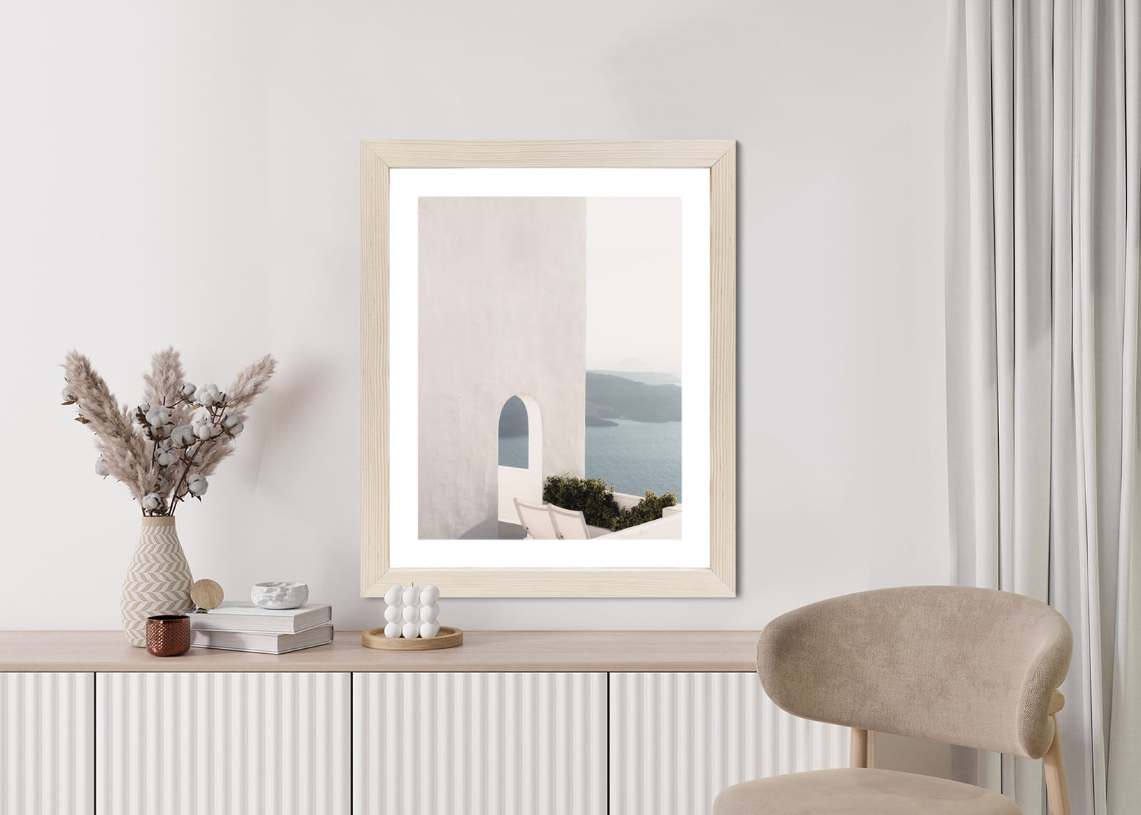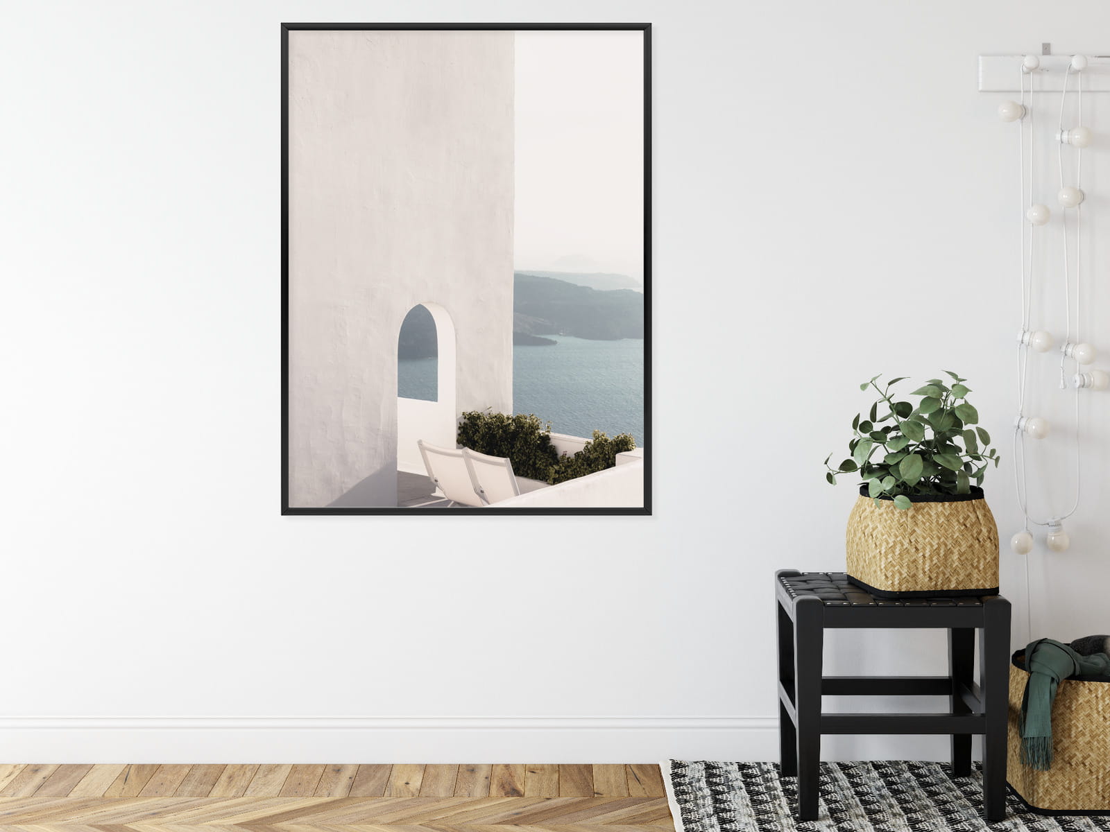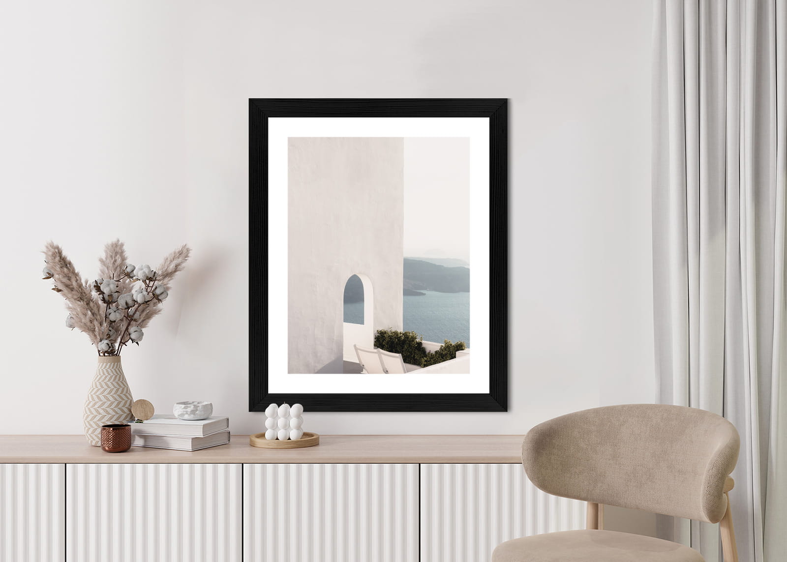 Plakat Biała Architektura Na Santorini Z Widokiem Na Morze