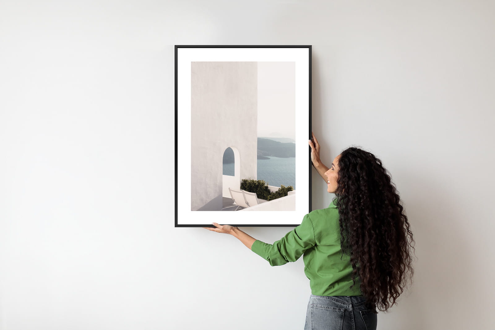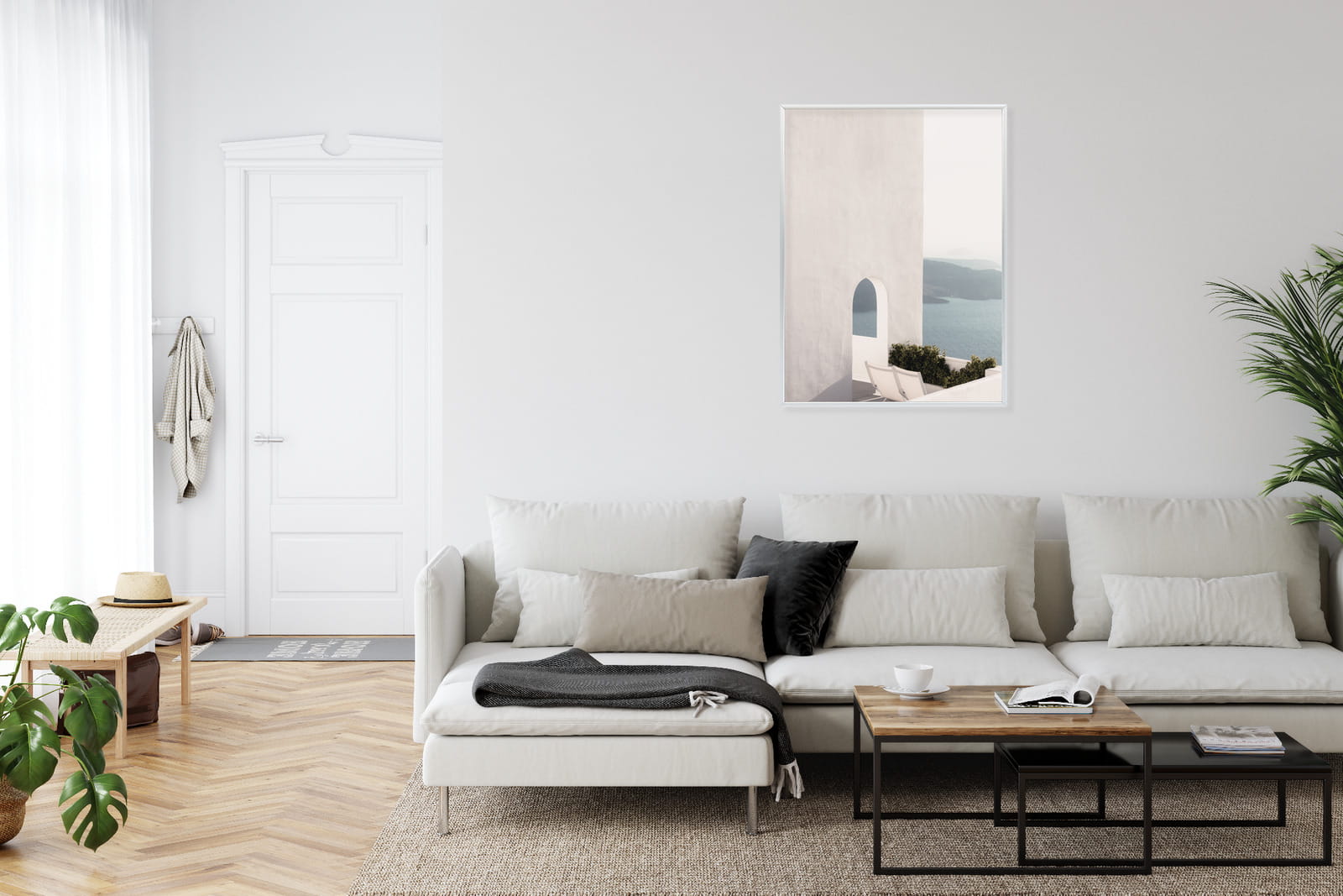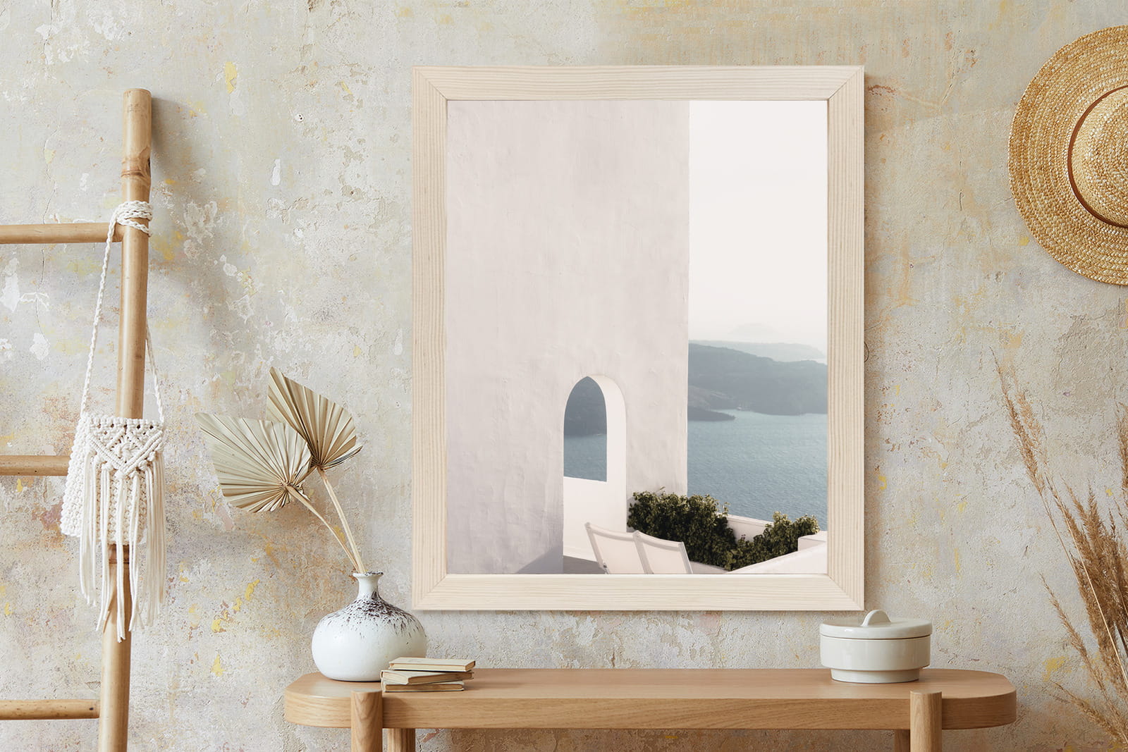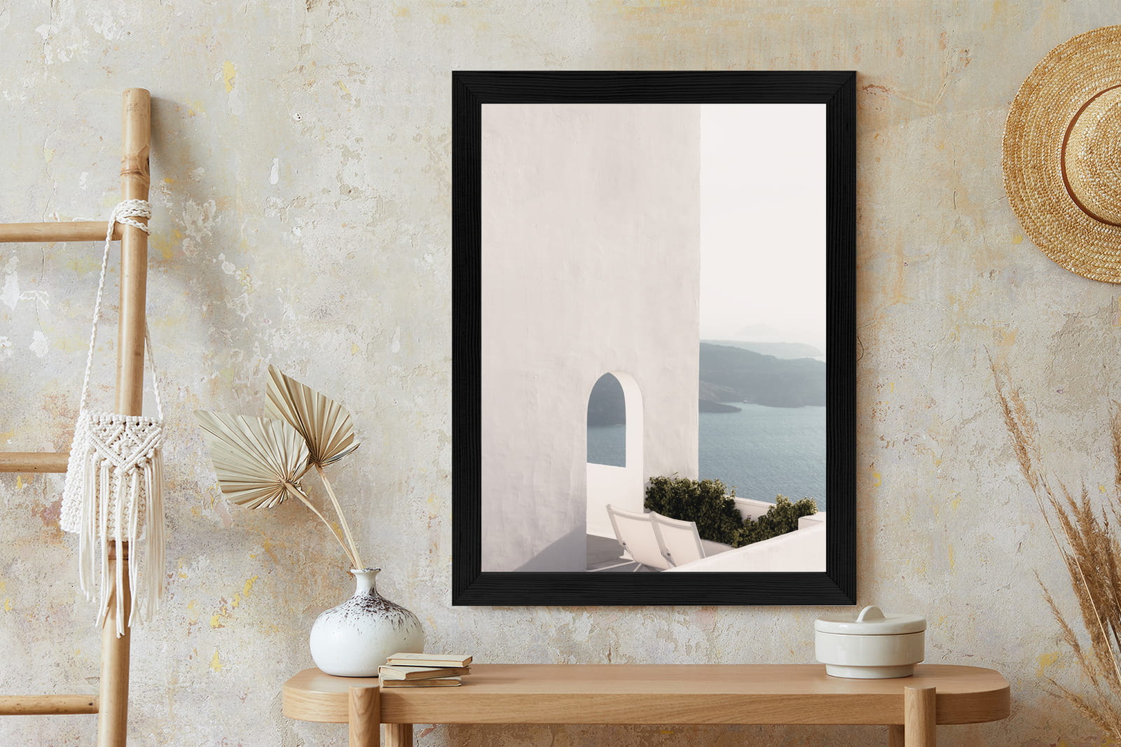 Plakat Biała Architektura Na Santorini Z Widokiem Na Morze