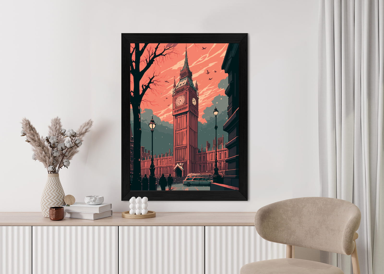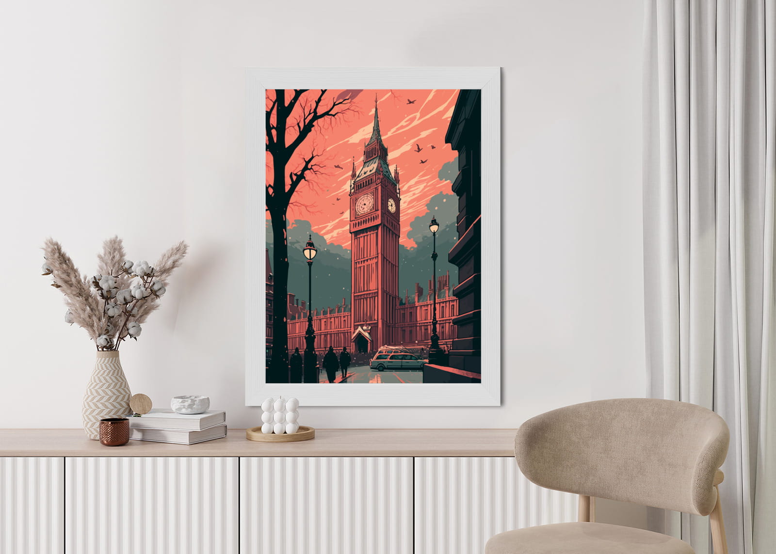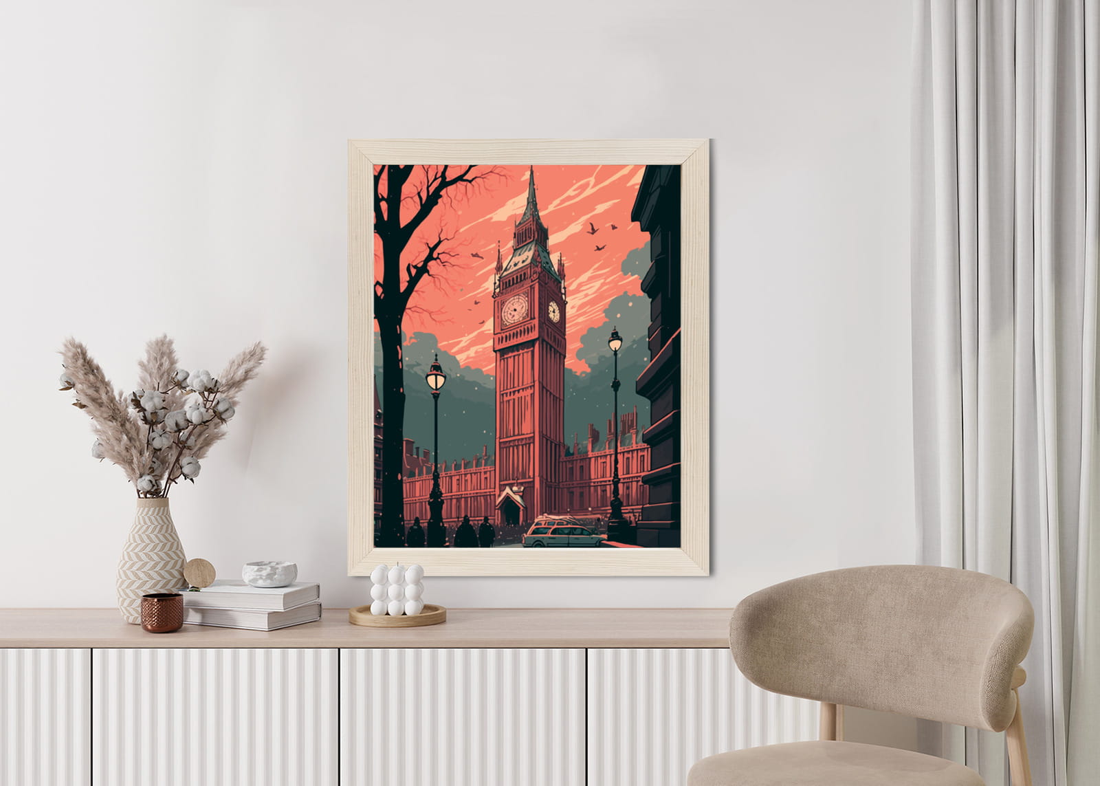 Plakat Big Ben W Londynie Komiksowa Ilustracja