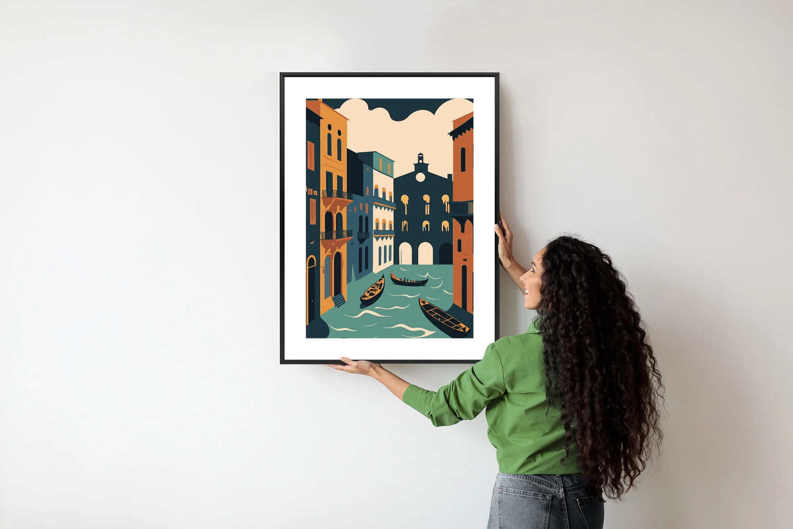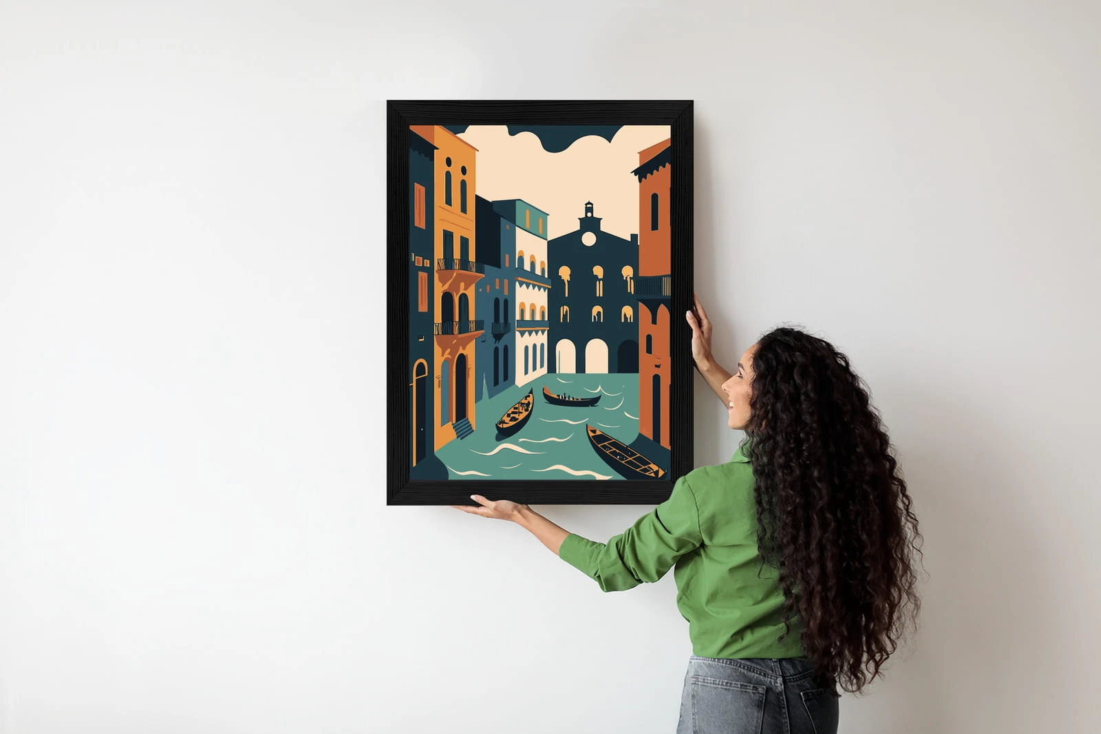 Plakat Canal Grande Z Gondolami W Wenecji Ilustracja